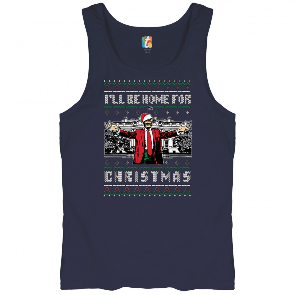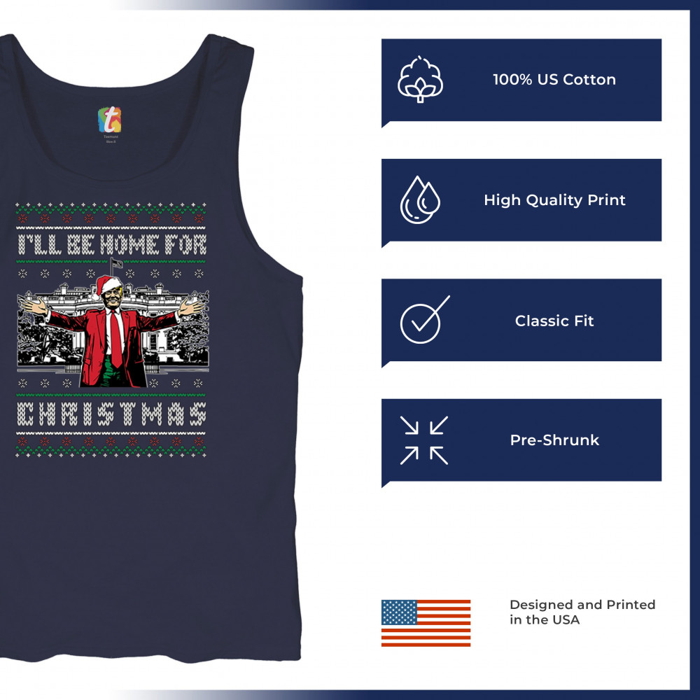 Get into the Christmas spirit with the "I'll Be Home for Christmas" design featuring Donald J. Trump in a festive holiday setting. Perfect for ugly sweater contests, holiday gatherings, and unique gifts for supporters, this humorous design adds a bold, patriotic touch to your seasonal celebrations. Whether for cozy mornings or office parties, it's a must-have for holiday cheer.