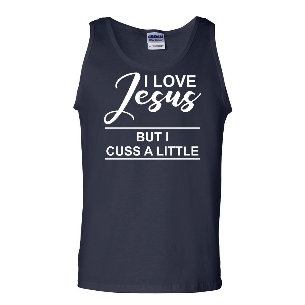 I LOVE JESUS BUT I CUSS A LITTLE tank top funny religion catholic sleeveless navy blue
