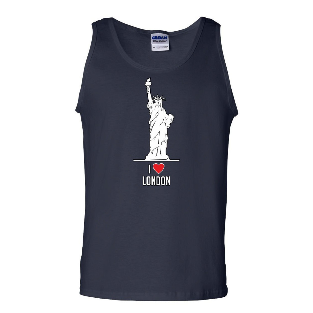 I HEART LONDON i love london tank top funny new york statue of liberty tourist sleeveless navy blue