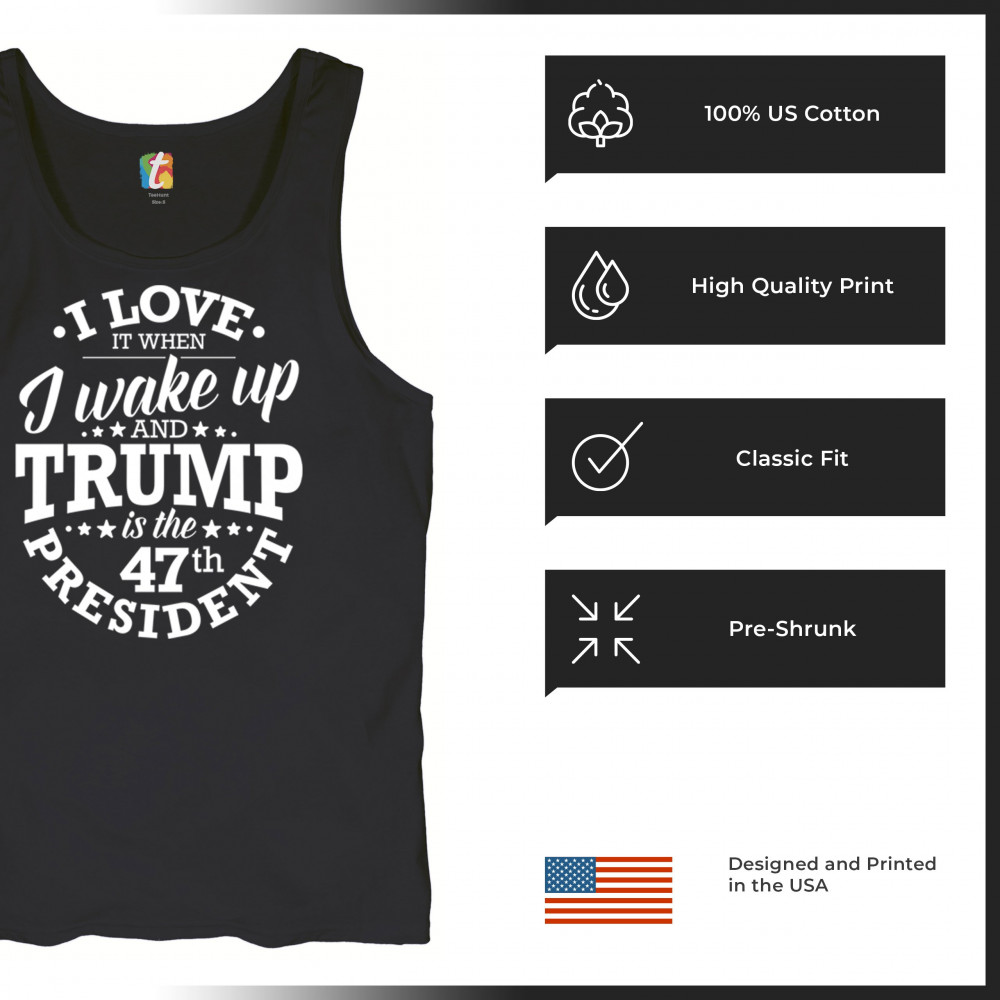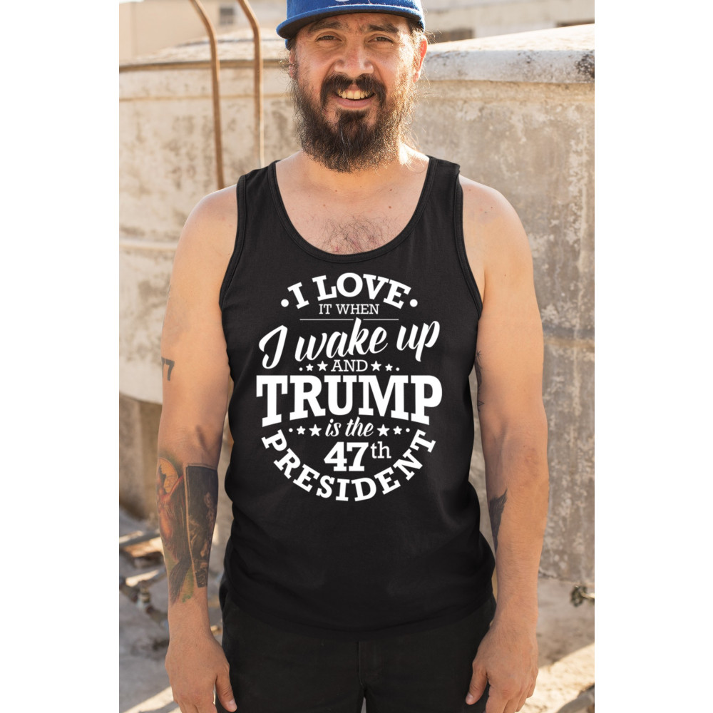 I LOVE TO WAKE UP AND TRUMP IS THE 47TH PRESIDENT tank top maga red men's top black