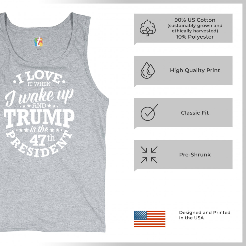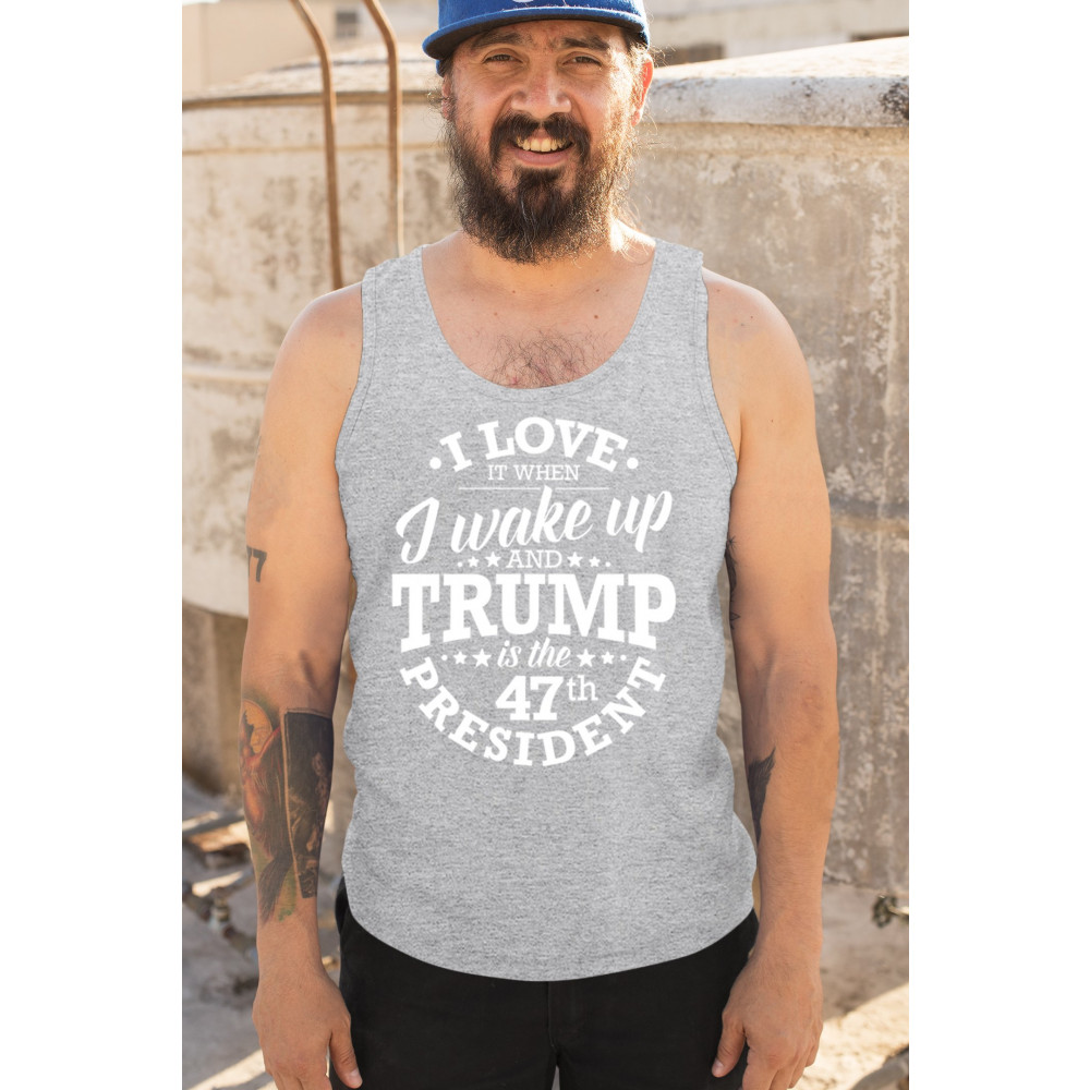 This "I Love It When I Wake Up and Trump is the 47th President" design is the ultimate expression of support for Donald J. Trump and his vision for America. Join the ranks of proud conservatives, Republicans, and America First advocates who are excited about the 47th President’s leadership. Celebrate the Red Wave and stay true to the values of freedom and strength that Trump embodies. Perfect for rallies, gatherings, and everyday patriotic wear.