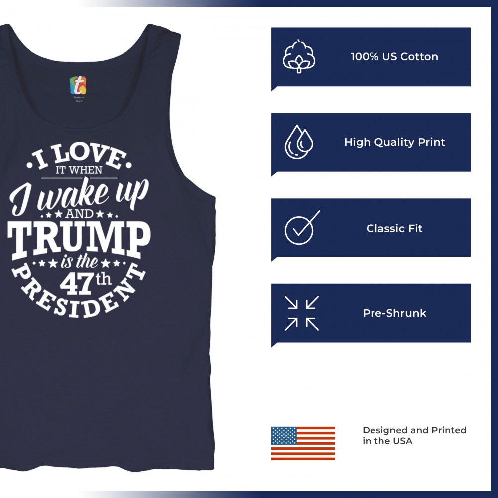 This "I Love It When I Wake Up and Trump is the 47th President" design is the ultimate expression of support for Donald J. Trump and his vision for America. Join the ranks of proud conservatives, Republicans, and America First advocates who are excited about the 47th President’s leadership. Celebrate the Red Wave and stay true to the values of freedom and strength that Trump embodies. Perfect for rallies, gatherings, and everyday patriotic wear.