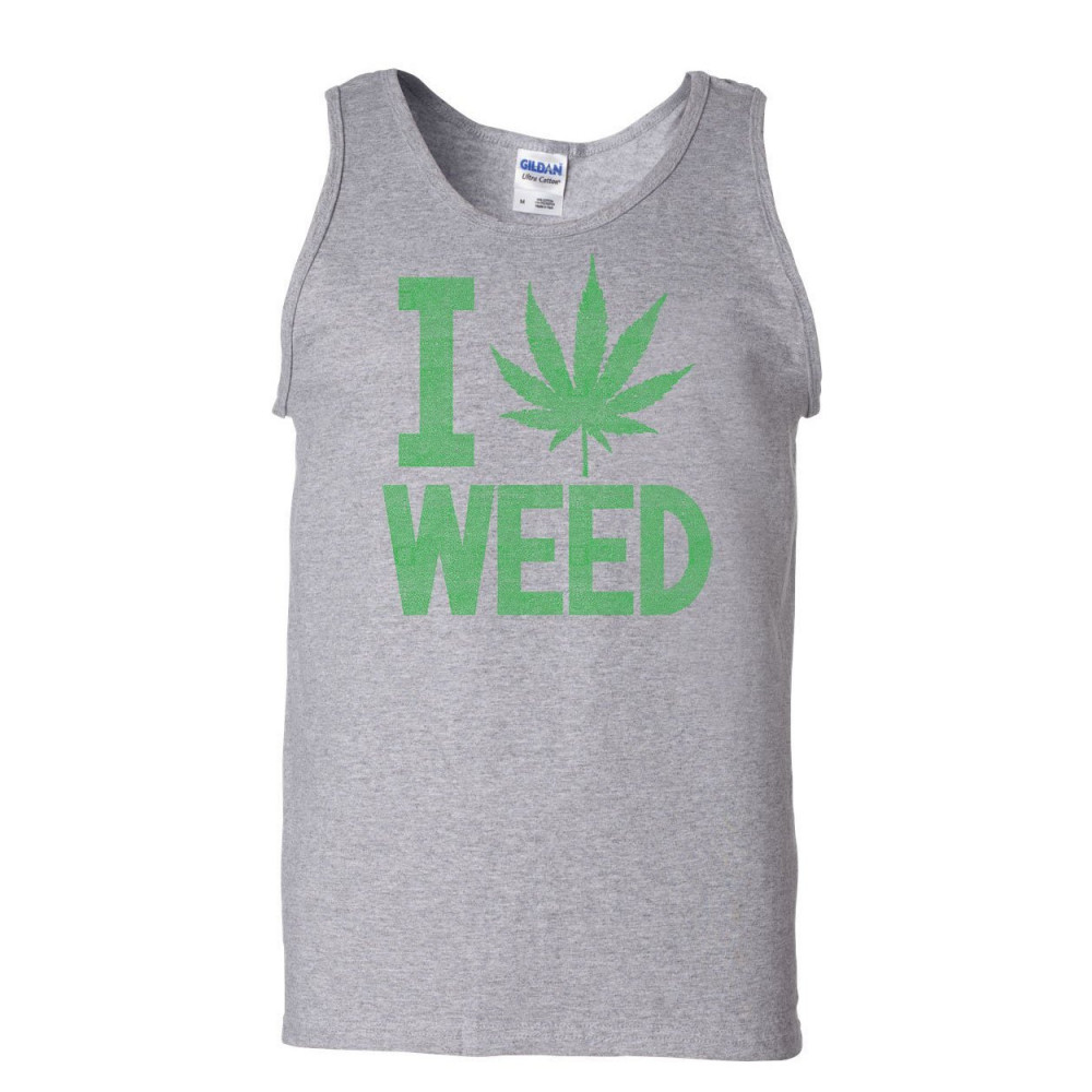 I LOVE WEED tank top smoking 420 pot reggae rasta marijuana kush sleeveless gray