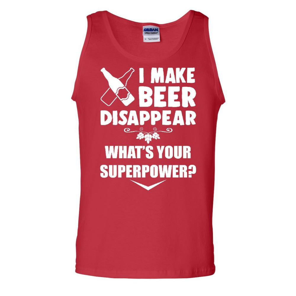 I MAKE BEER DISAPPEAR tank top funny drinking superpower booze sleeveless red