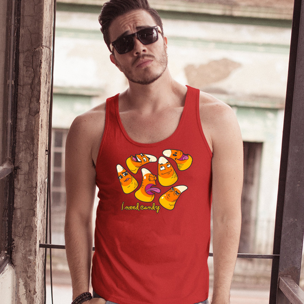 I NEED CANDY tank top happy halloween trick-or-treating funny men's top red