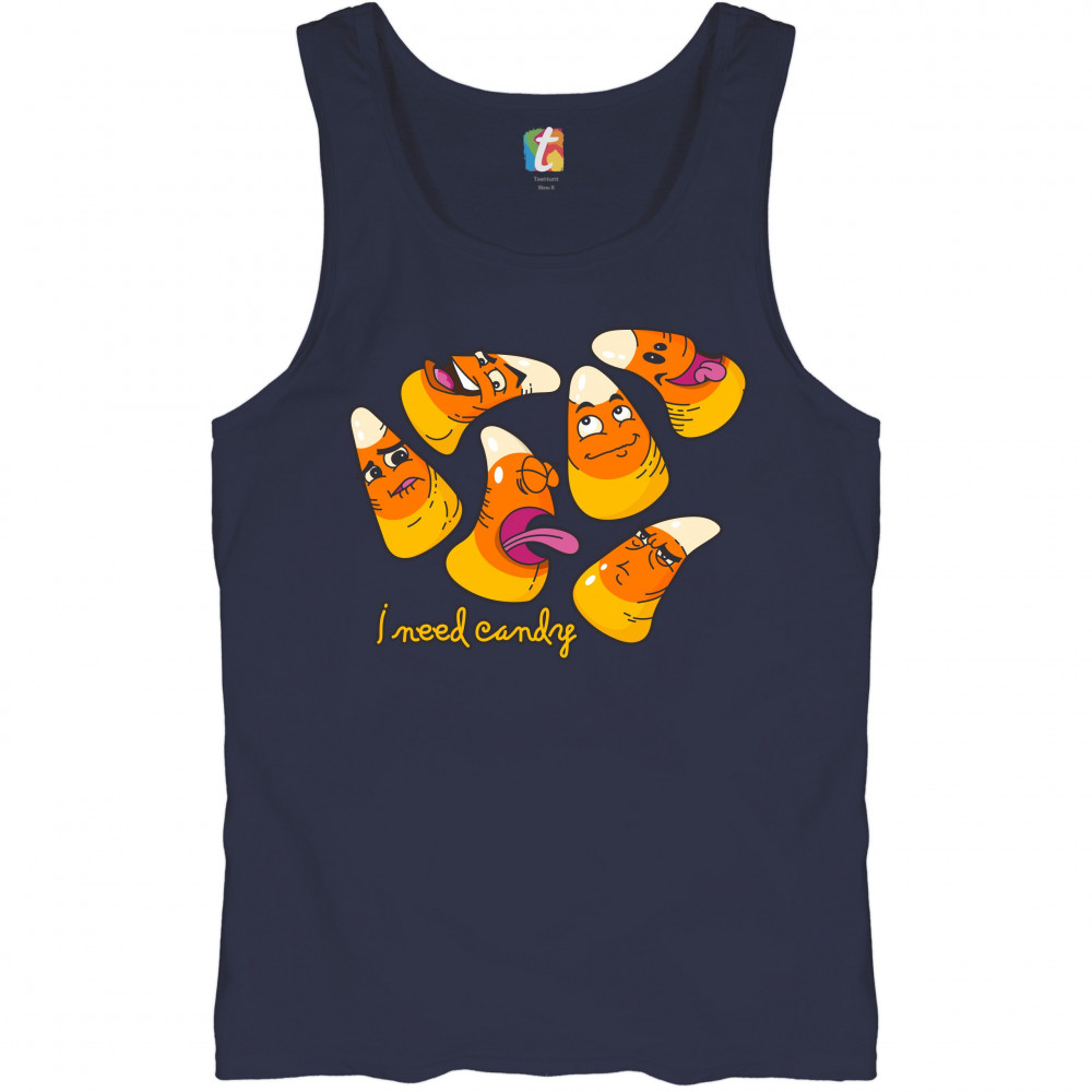 I NEED CANDY tank top happy halloween trick-or-treating funny men's top navy blue