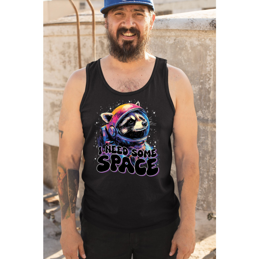 I NEED SOME SPACE RACOON men's tank top funny cute astronaut cosmic pet black