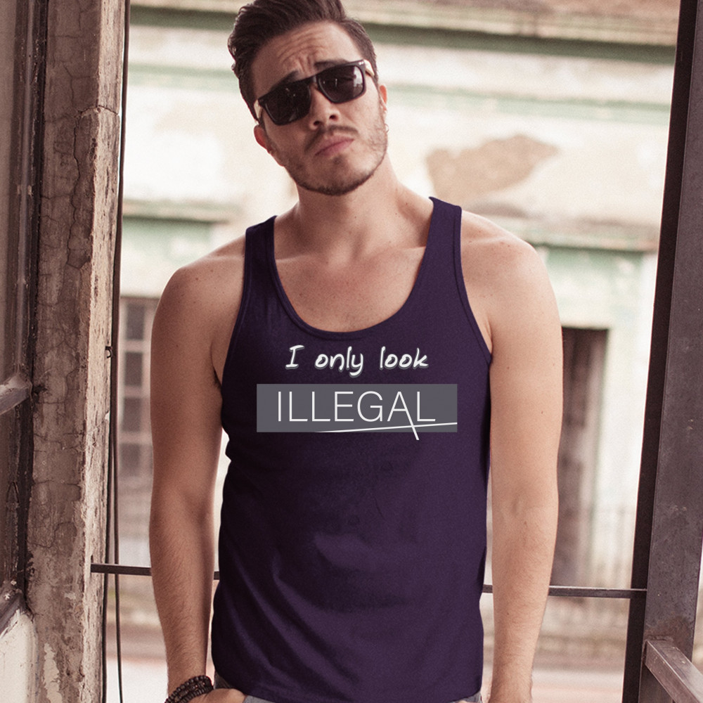 I ONLY LOOK ILLEGAL tank top stop racism pro immigration funny men's top navy blue