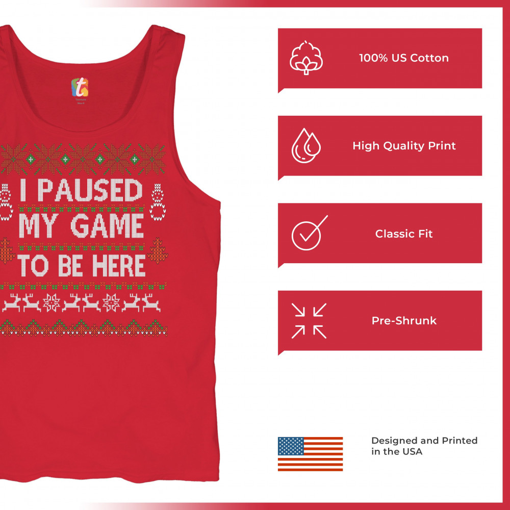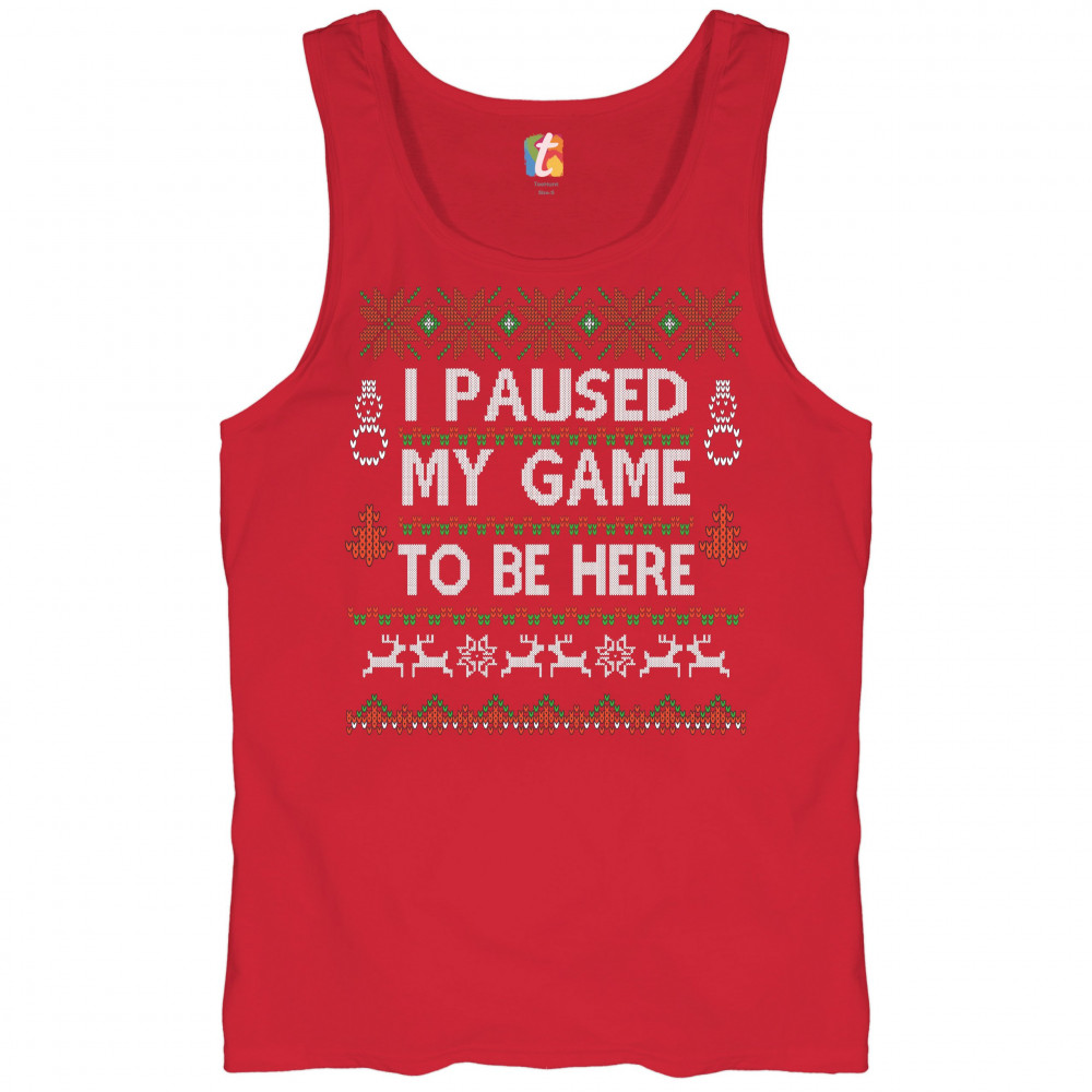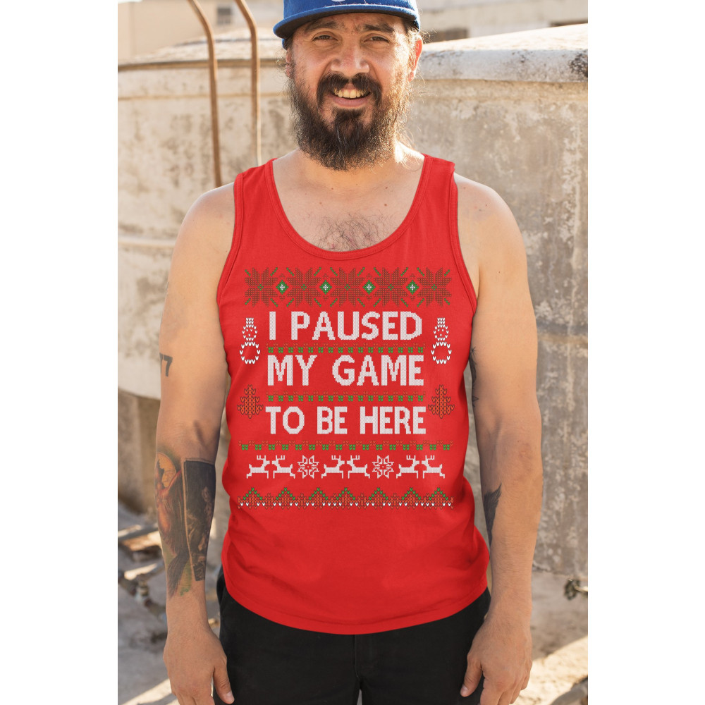 I PAUSED MY GAME TO BE HERE UGLY SWEATER THEME tank top christmas men's top red