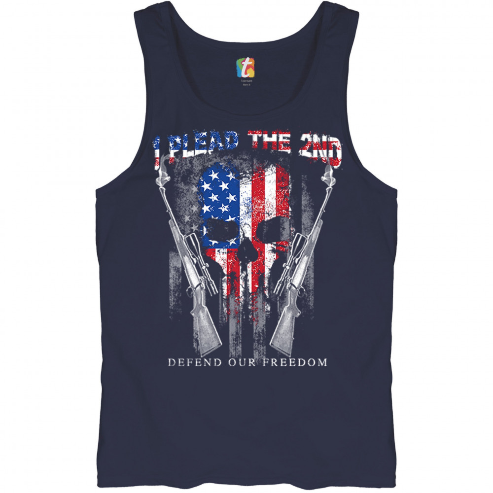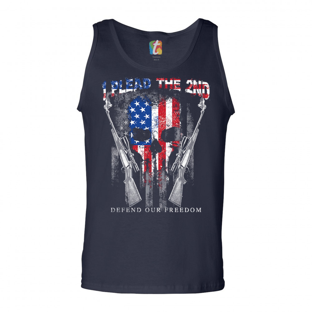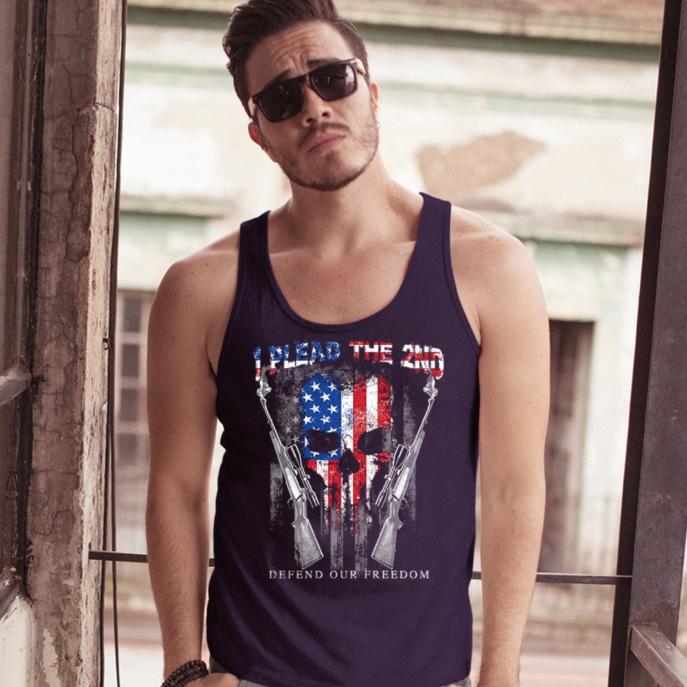 I PLEAD THE 2ND DEFEND OUR FREEDOM tank top american flag skull face men's top navy blue