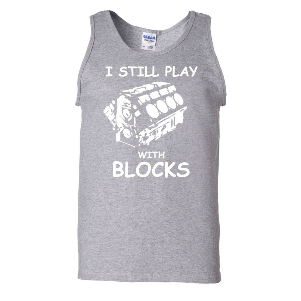 I STILL PLAY WITH BLOCKS tank top funny car mechanic engine gray