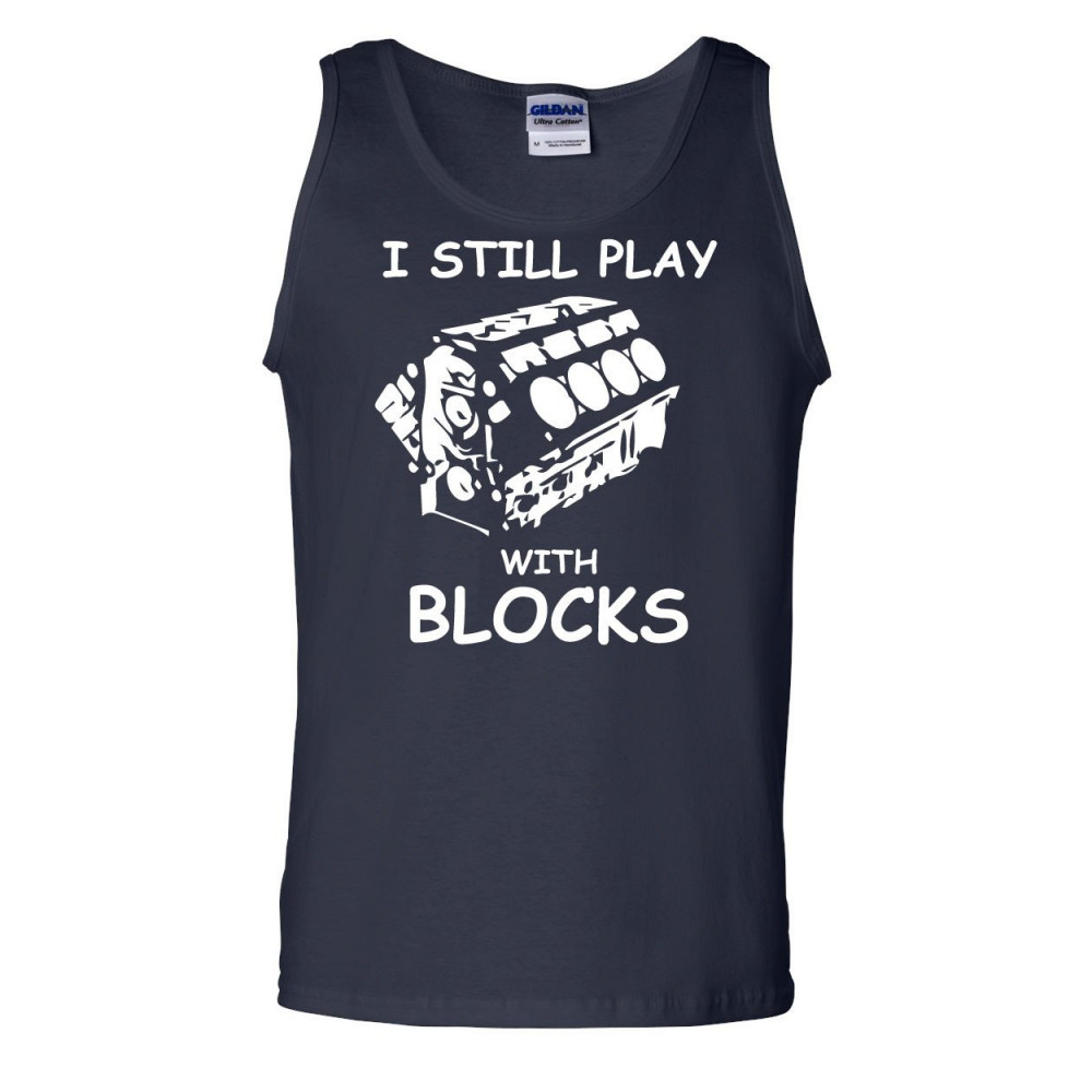 I STILL PLAY WITH BLOCKS tank top funny car mechanic engine navy blue