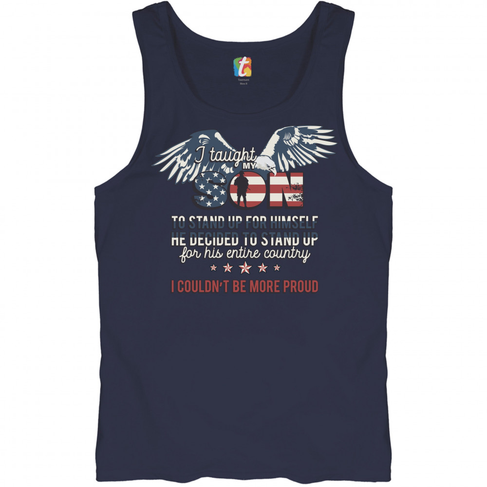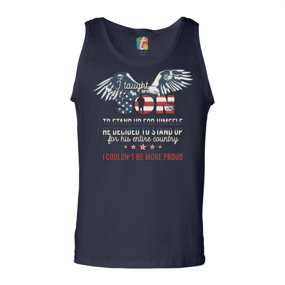 I TAUGHT MY SON TO STAND UP FOR HIMSELF tank top military patriotic men's top navy blue