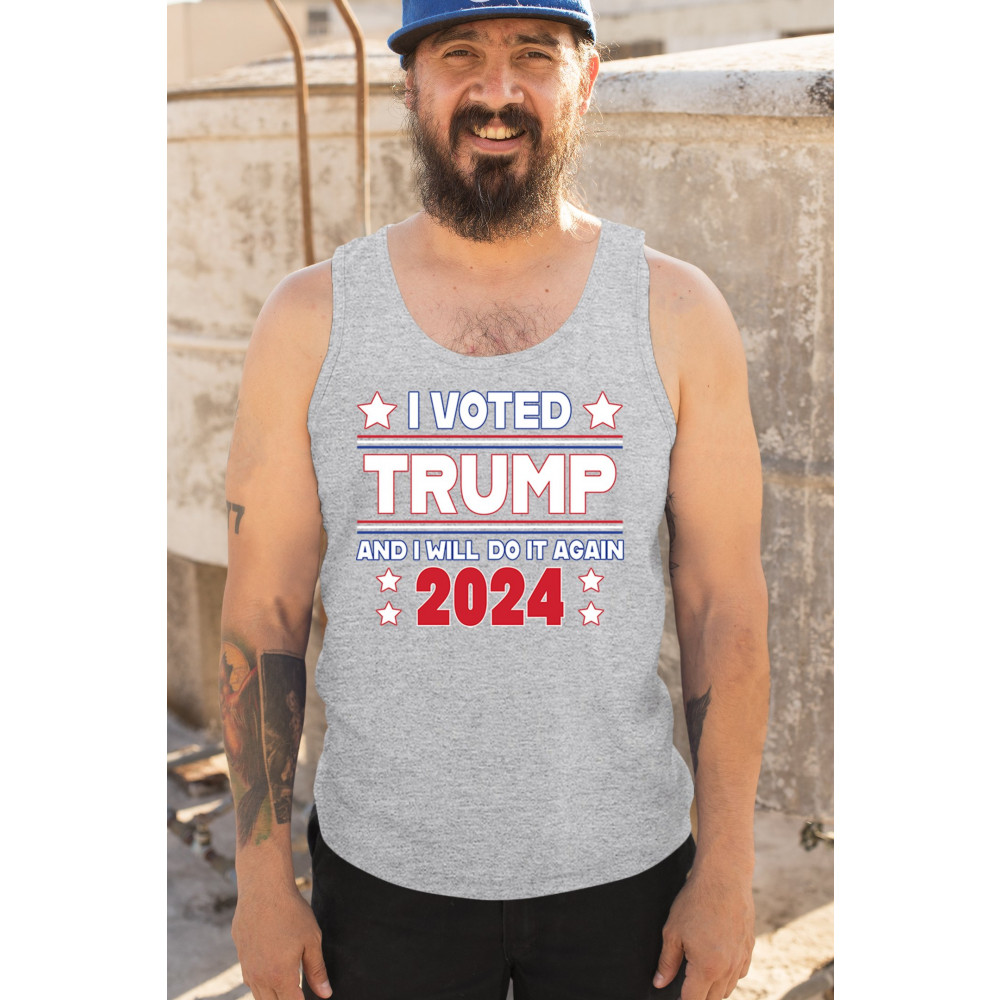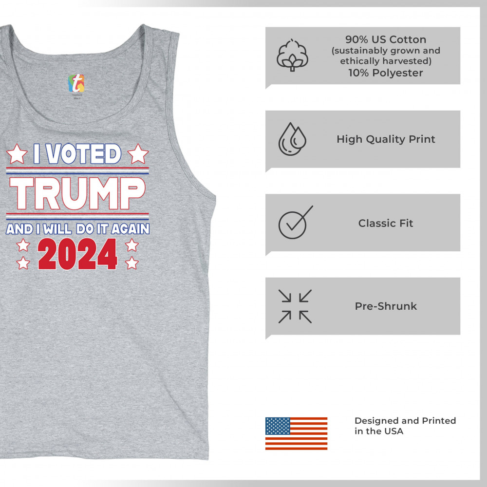 Stand tall as a dedicated Trump supporter with our "I Voted Trump and Will Do It Again 2024" design, showcasing your unwavering commitment to the America First agenda. Let the world know that you stand ready to cast your vote for President Trump once more