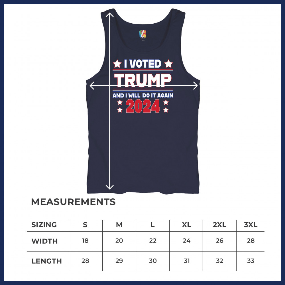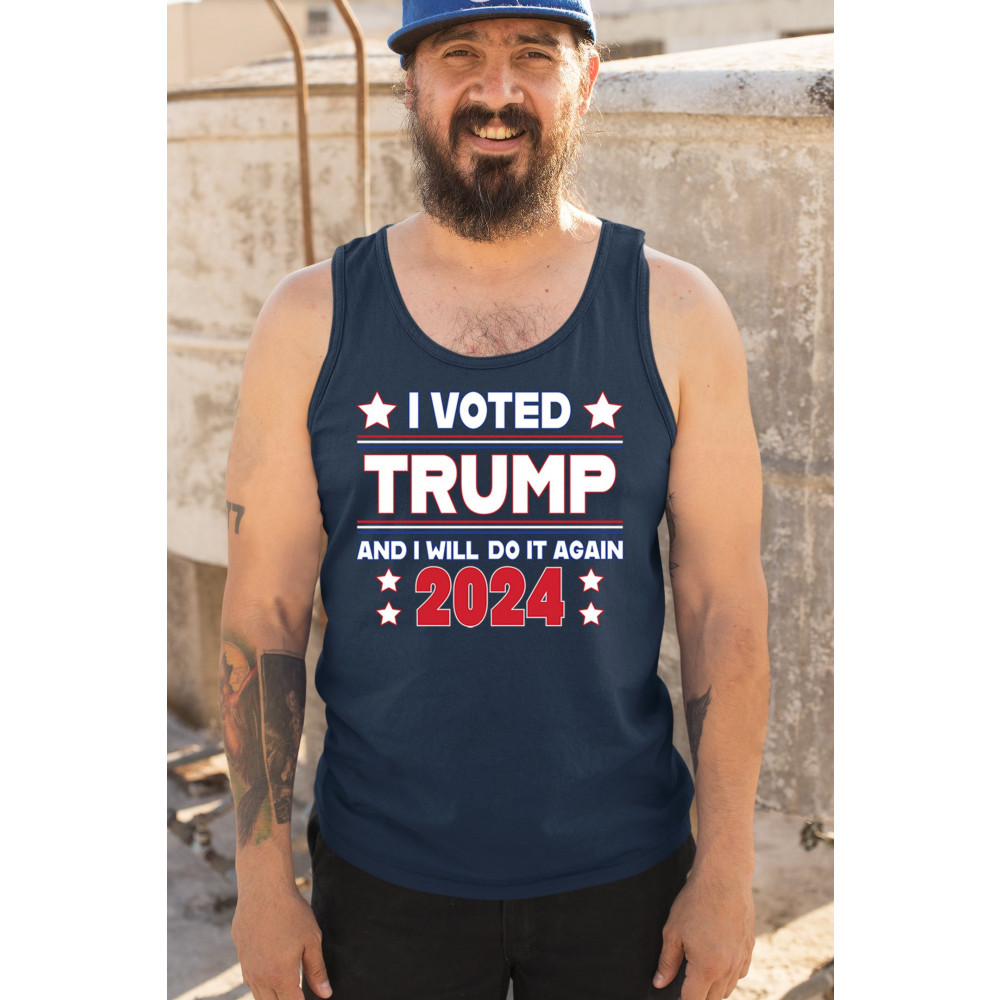 Stand tall as a dedicated Trump supporter with our "I Voted Trump and Will Do It Again 2024" design, showcasing your unwavering commitment to the America First agenda. Let the world know that you stand ready to cast your vote for President Trump once more