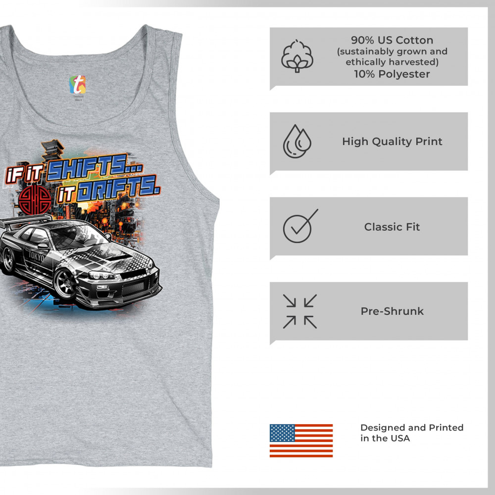 Dive into the world of high-speed drifting with our "If It Shifts, It Drifts" design. Featuring a detailed car against a vibrant cityscape, this is perfect for car enthusiasts and racing fans. Made from premium, soft fabric, it offers superior comfort and durability for all-day wear. Ideal for car shows, racing events, or casual outings, this design lets you express your love for the thrill of the drift in style. It’s also a fantastic gift for any car lover, adding a dynamic touch to their collection.