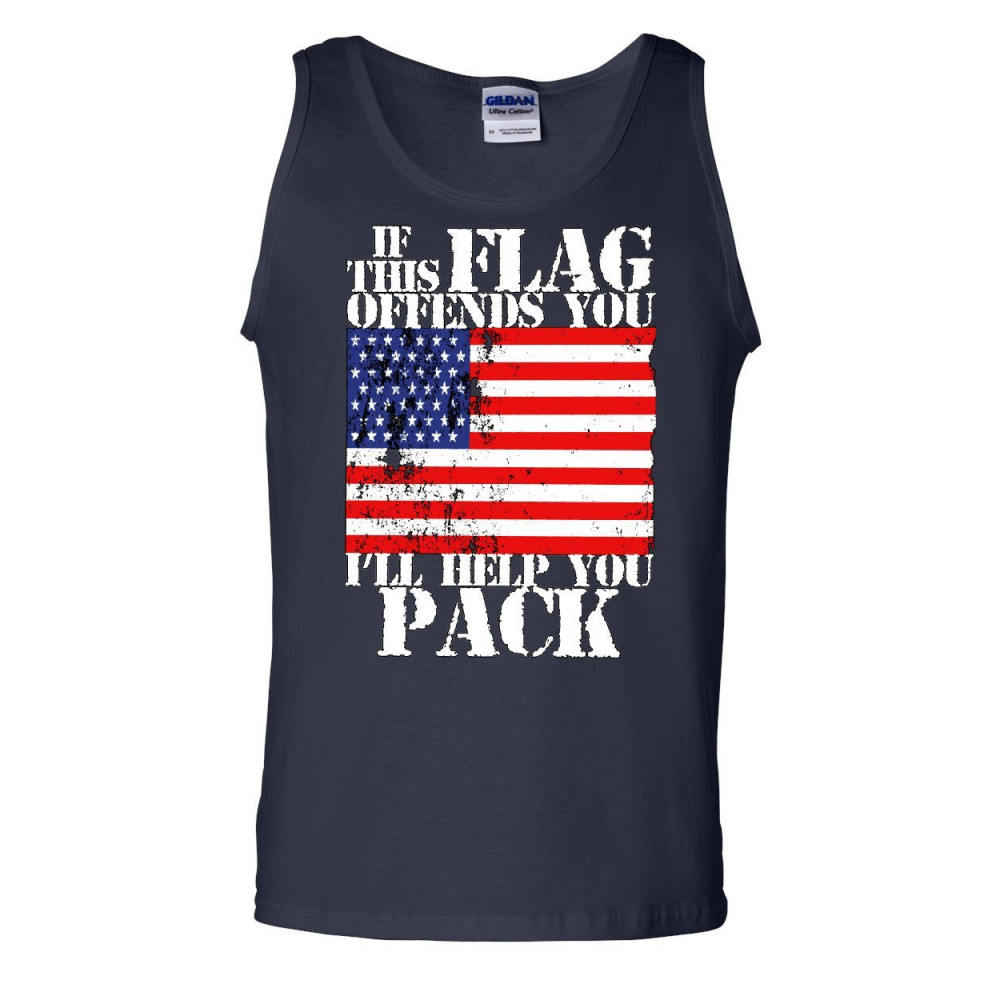 IF THIS FLAG OFFENDS YOU I'LL HELP YOU PACK tank top patriotic sleeveless navy blue