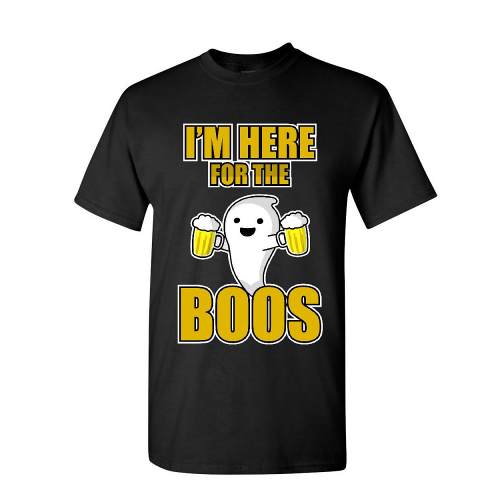I'M HERE FOR THE BOOS t-shirt halloween ghost drinking beer mug mens tee shirt black