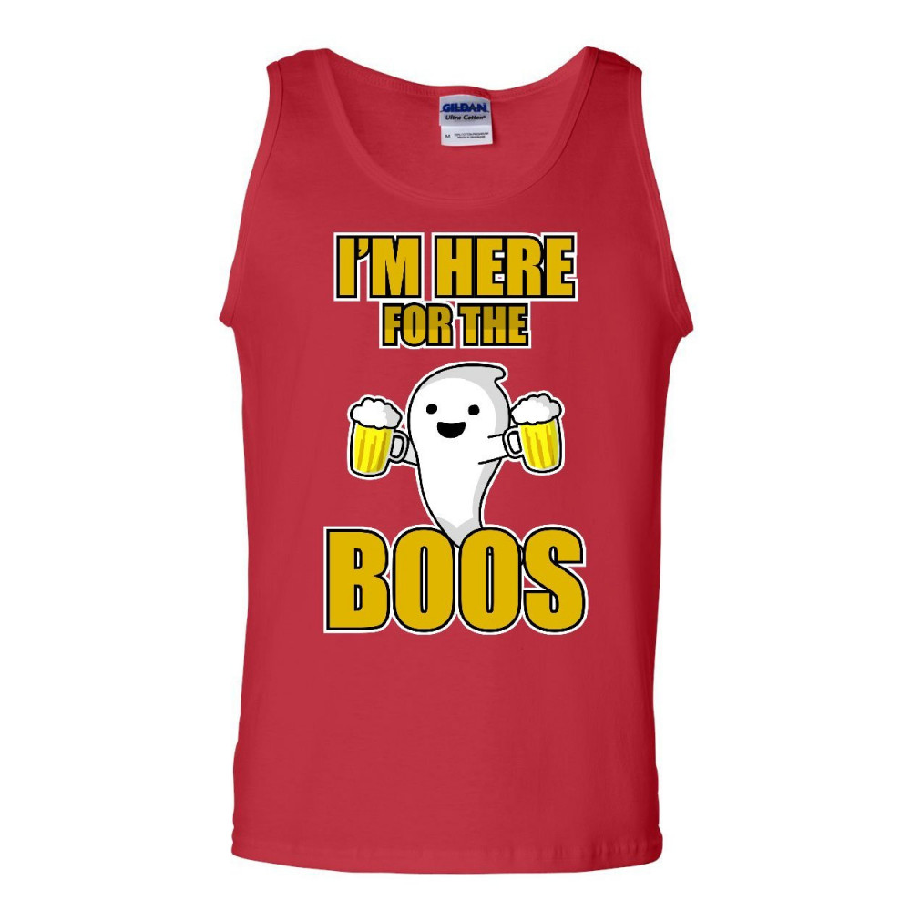 I'M HERE FOR THE BOOS tank top halloween ghost drinking beer mug sleeveless red