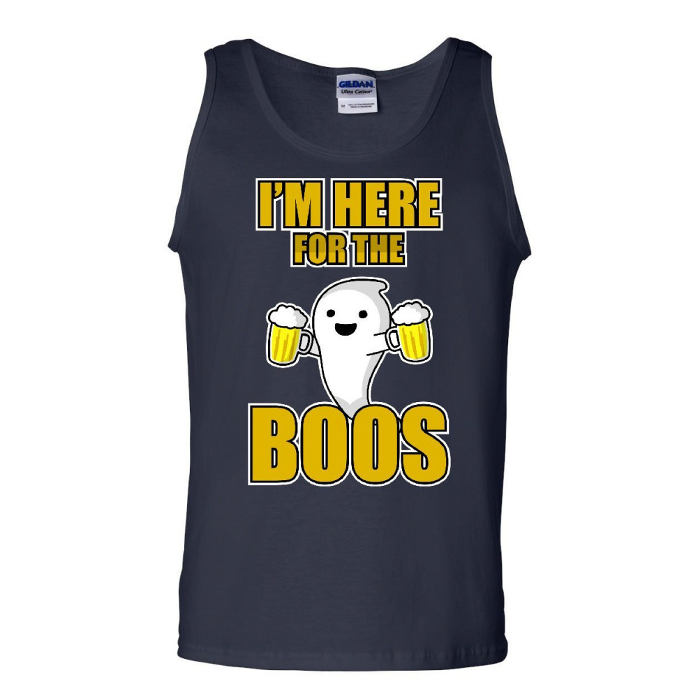 I'M HERE FOR THE BOOS tank top halloween ghost drinking beer mug sleeveless navy blue