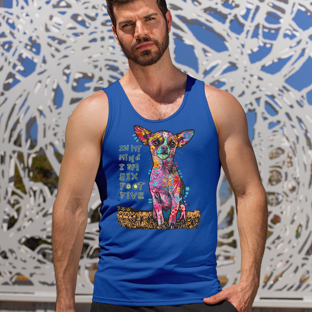 IN MY MIND I'M SIX FOOT FIVE tank top dean russo funny chihuahua men's top royal blue