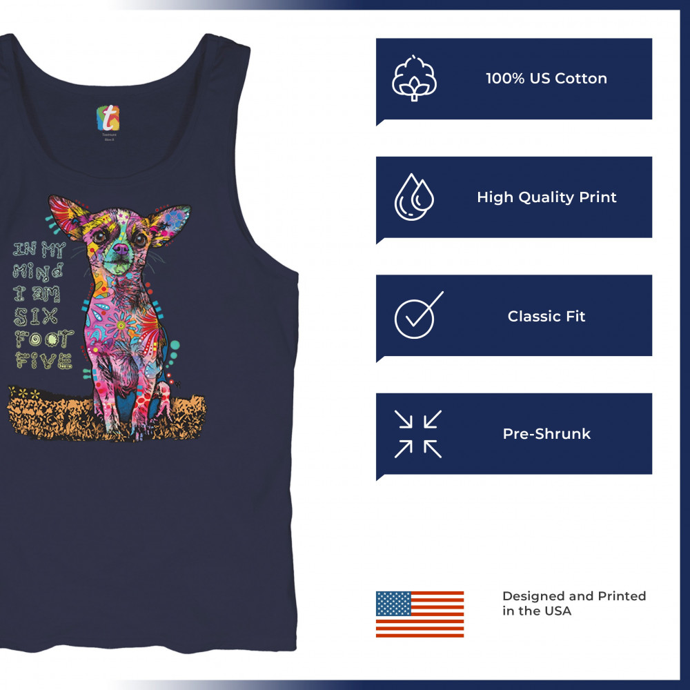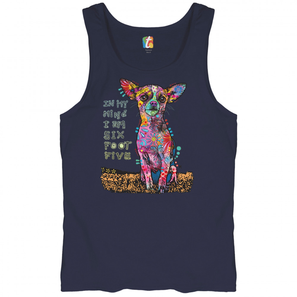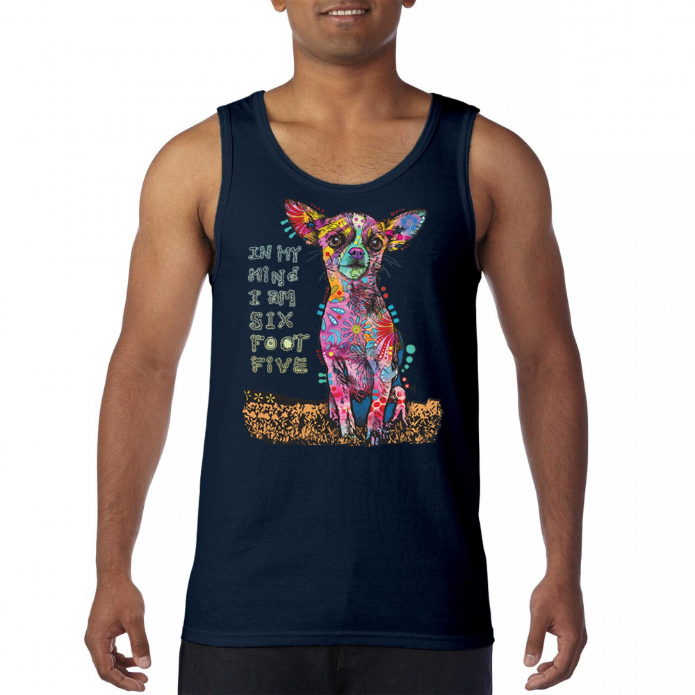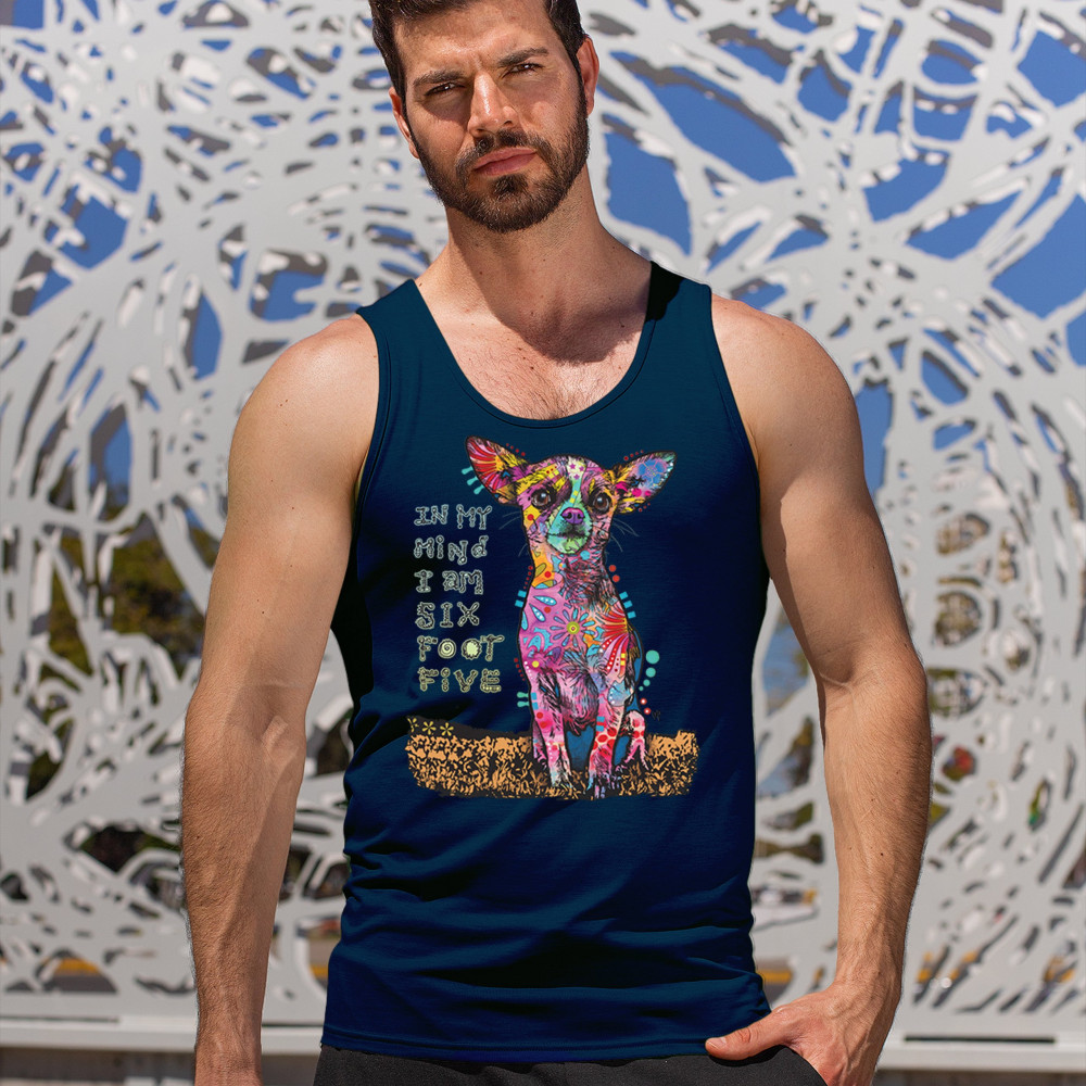 IN MY MIND I'M SIX FOOT FIVE tank top dean russo funny chihuahua men's top navy blue