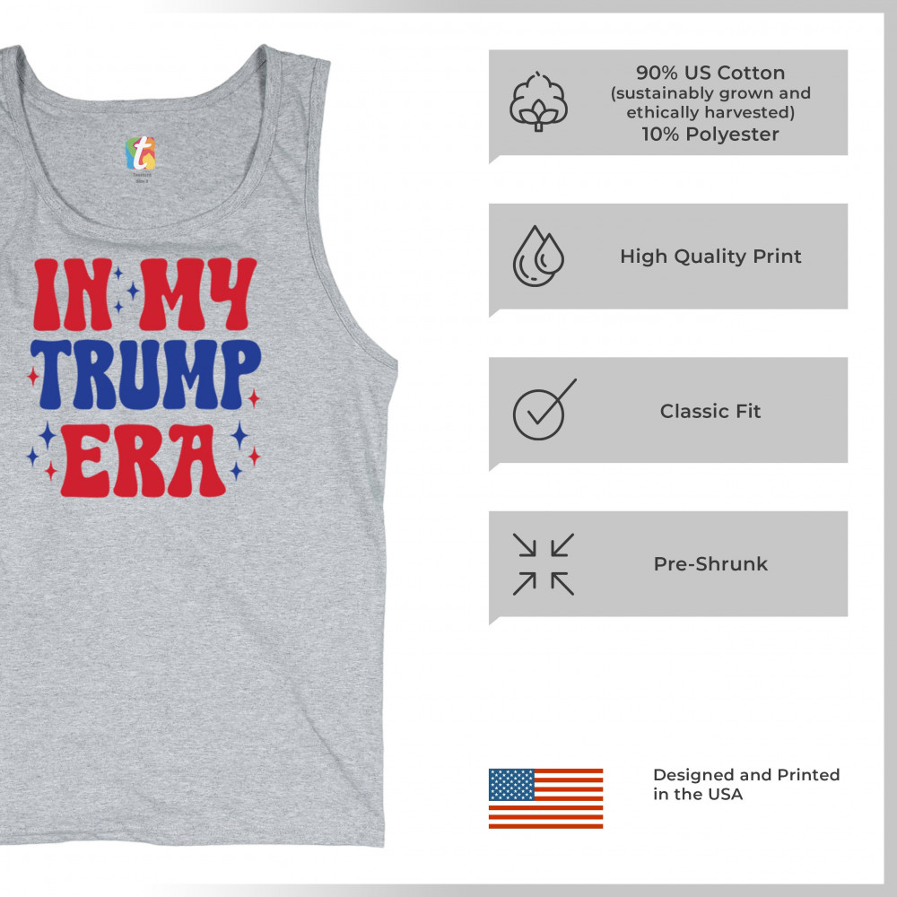 Declare your pride with this "In My Trump Era" design. Perfect for Trump supporters embracing America First, Republican values, and freedom.
