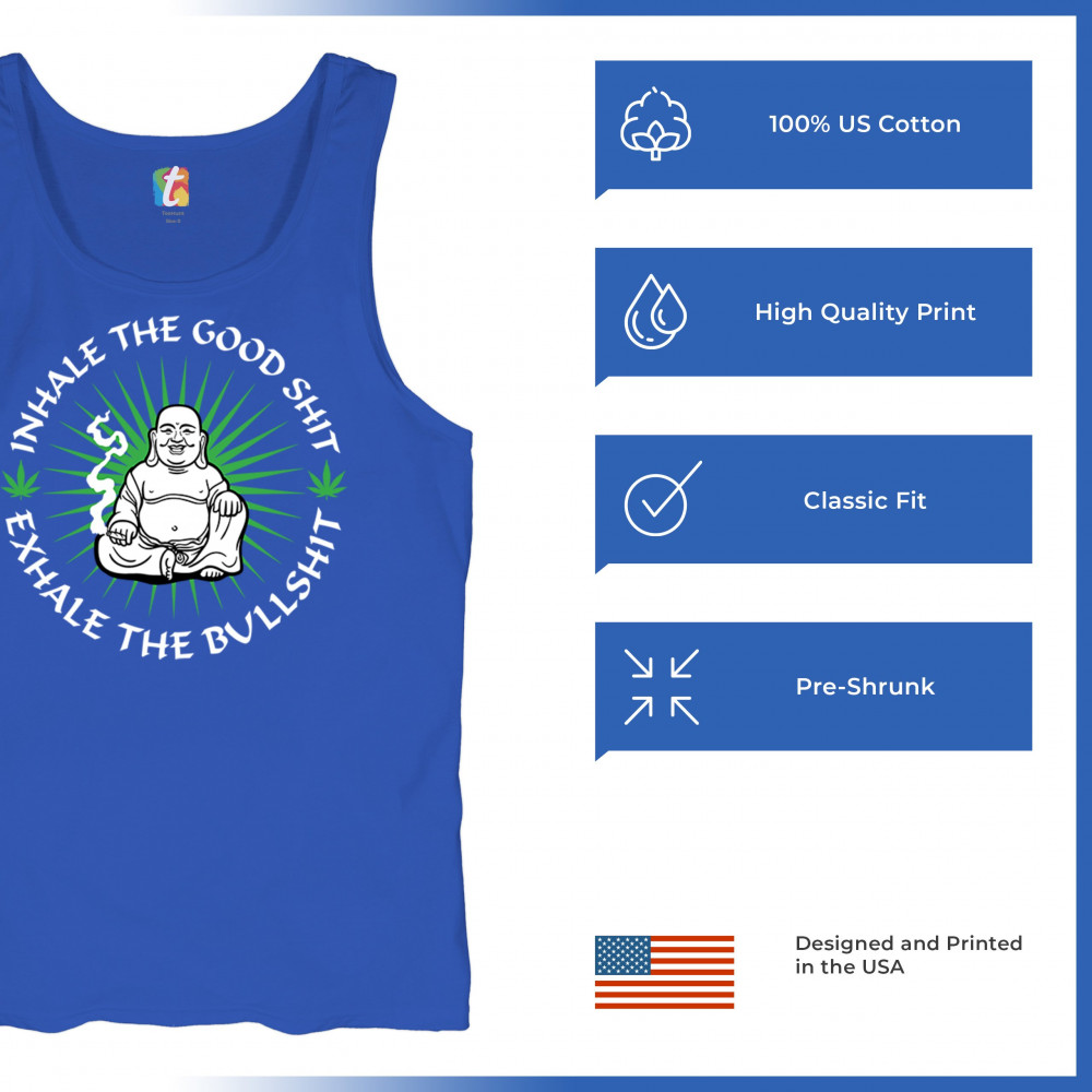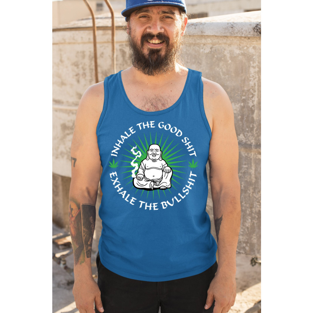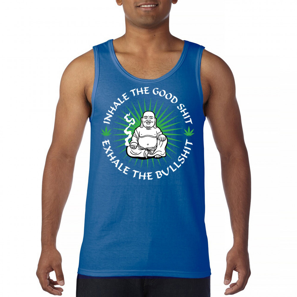 This hilarious and zen-inspired design features a happy Buddha with a joint, surrounded by cannabis leaves. “Inhale the Good Shit, Exhale the Bullshit†delivers chill stoner wisdom with a wink. Ideal for mindful marijuana lovers, 420 fans, or spiritual rebels with a sense of humor and a love for weed.