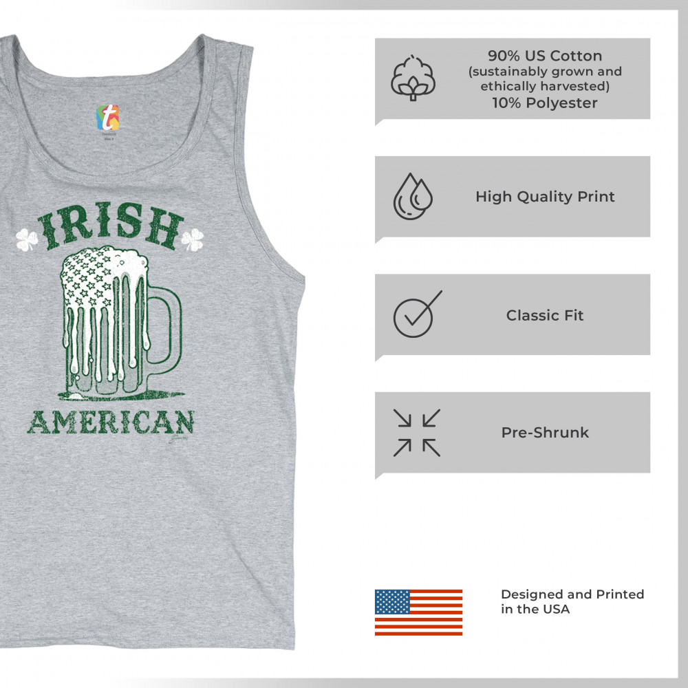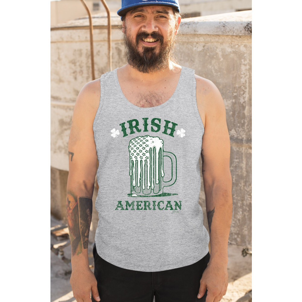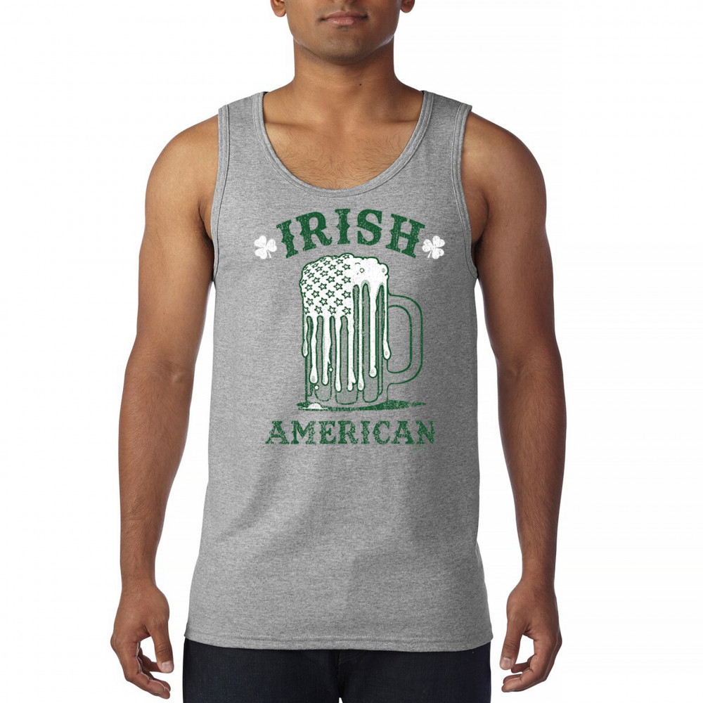 IRISH AMERICAN ST PATRICK'S DAY tank top shamrock shenanigans beer men's top gray