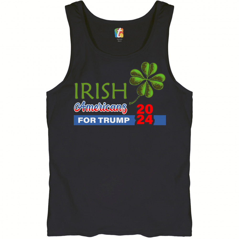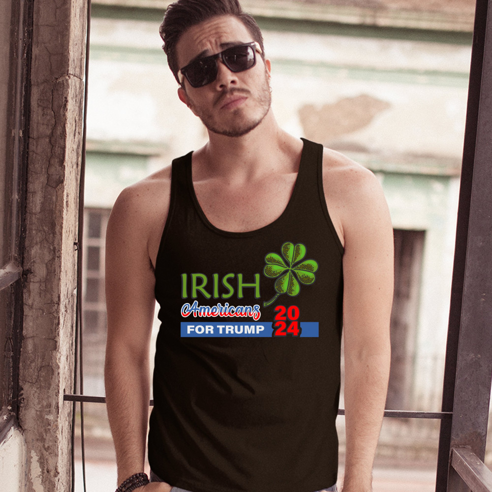 IRISH AMERICANS FOR TRUMP tank top pro donald trump 2024 shamrock men's top black