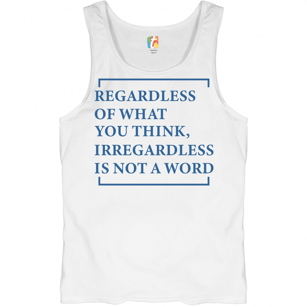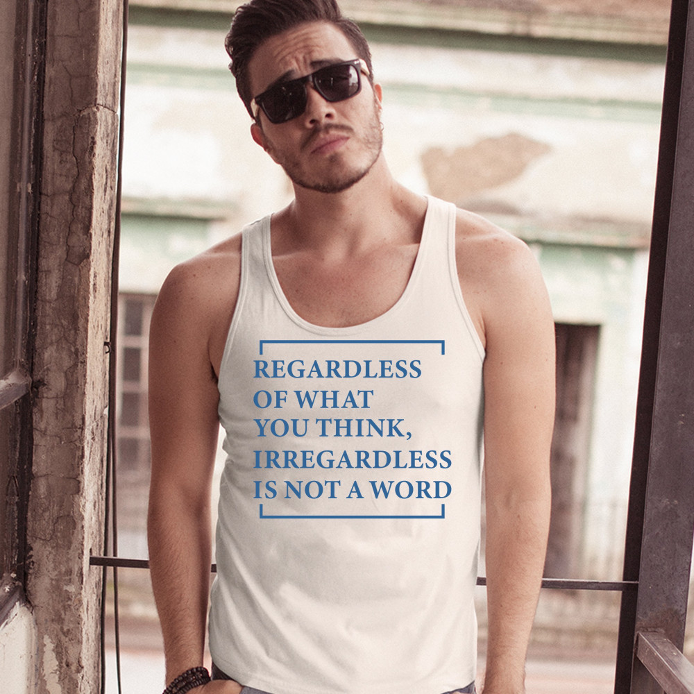 IRREGARDLESS IS NOT A WORD tank top funny english grammar men's top white