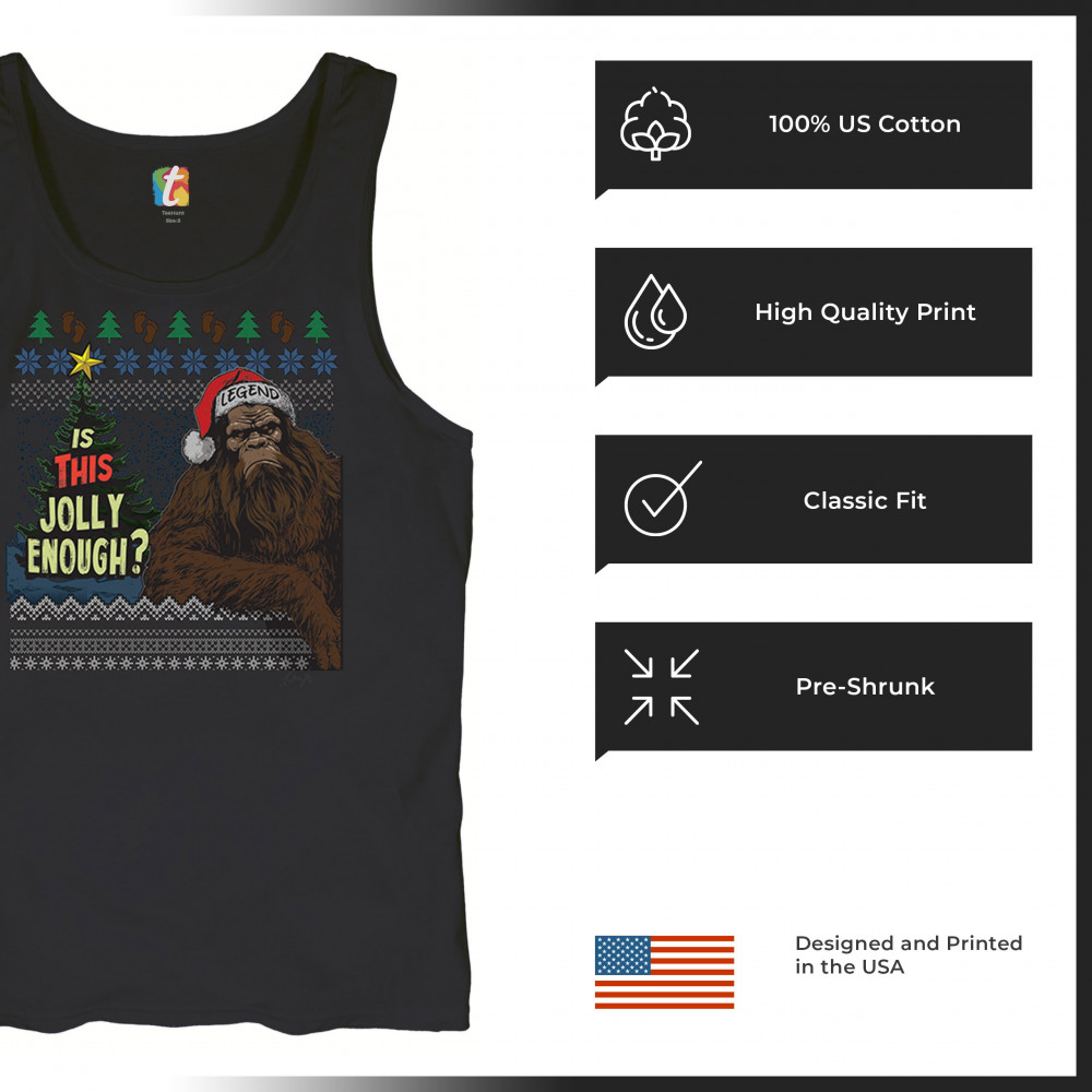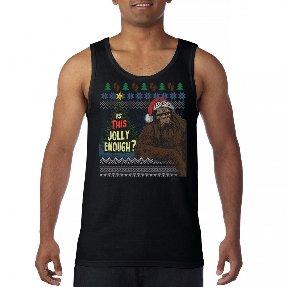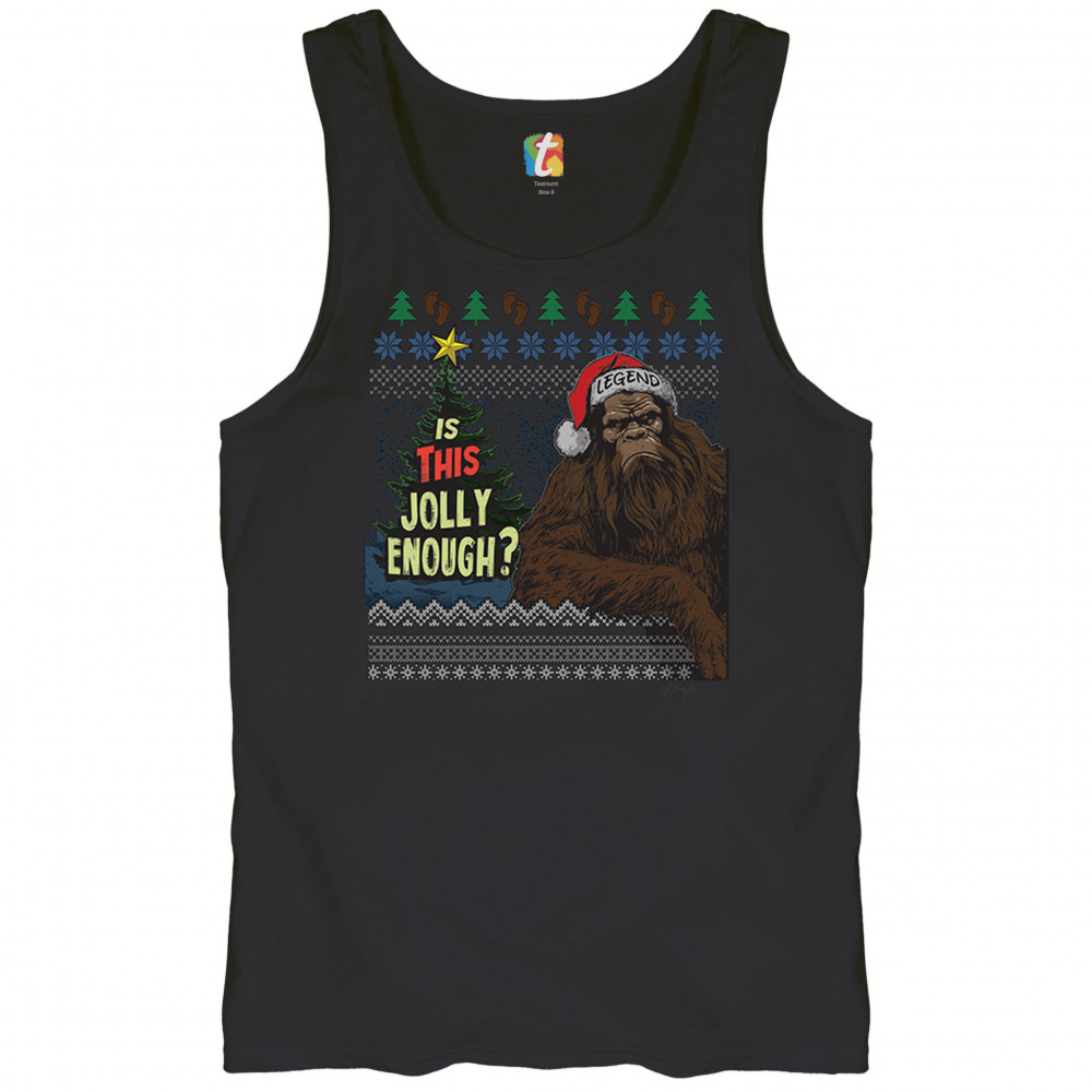 IS THIS JOLLY ENOUGH BIGFOOT CHRISTMAS tank top funny sasquatch xmas men's top black