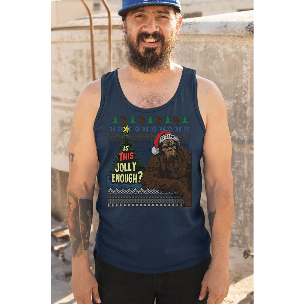 Add humor to your holiday season with the "Is This Jolly Enough?" design, featuring a legendary creature ready for Christmas cheer. Perfect for holiday gatherings and cozy winter nights!