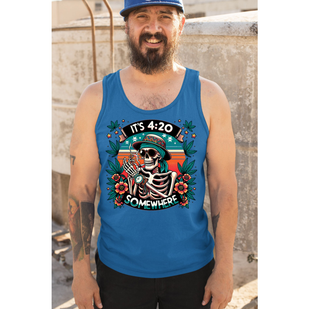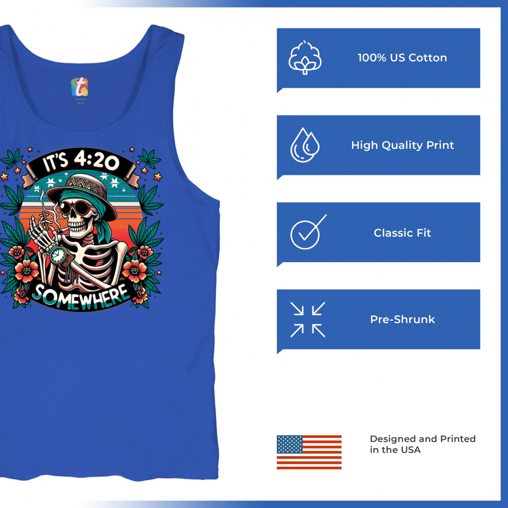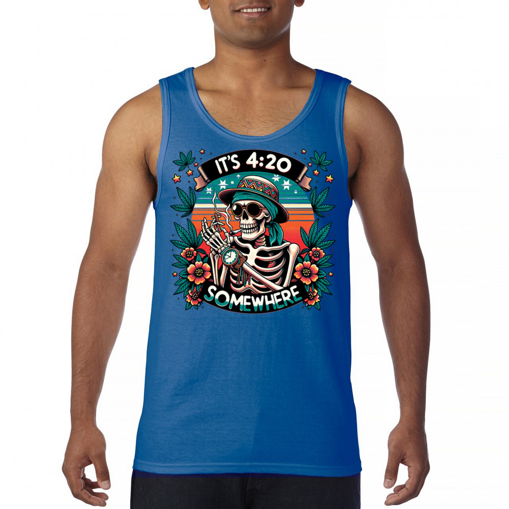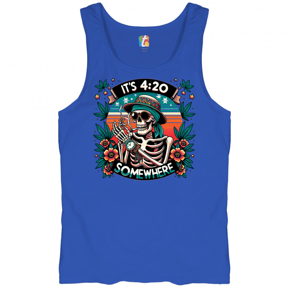 Get lifted with this “It’s 4:20 Somewhere†design featuring a joint-smoking skeleton, tropical sunset, and Deadhead stoner vibes. With bold trippy colors and beachy weed art, this tee is perfect for April 20 parties, summer festivals, and cannabis lovers living the high life.