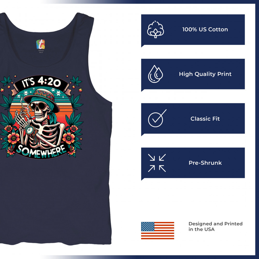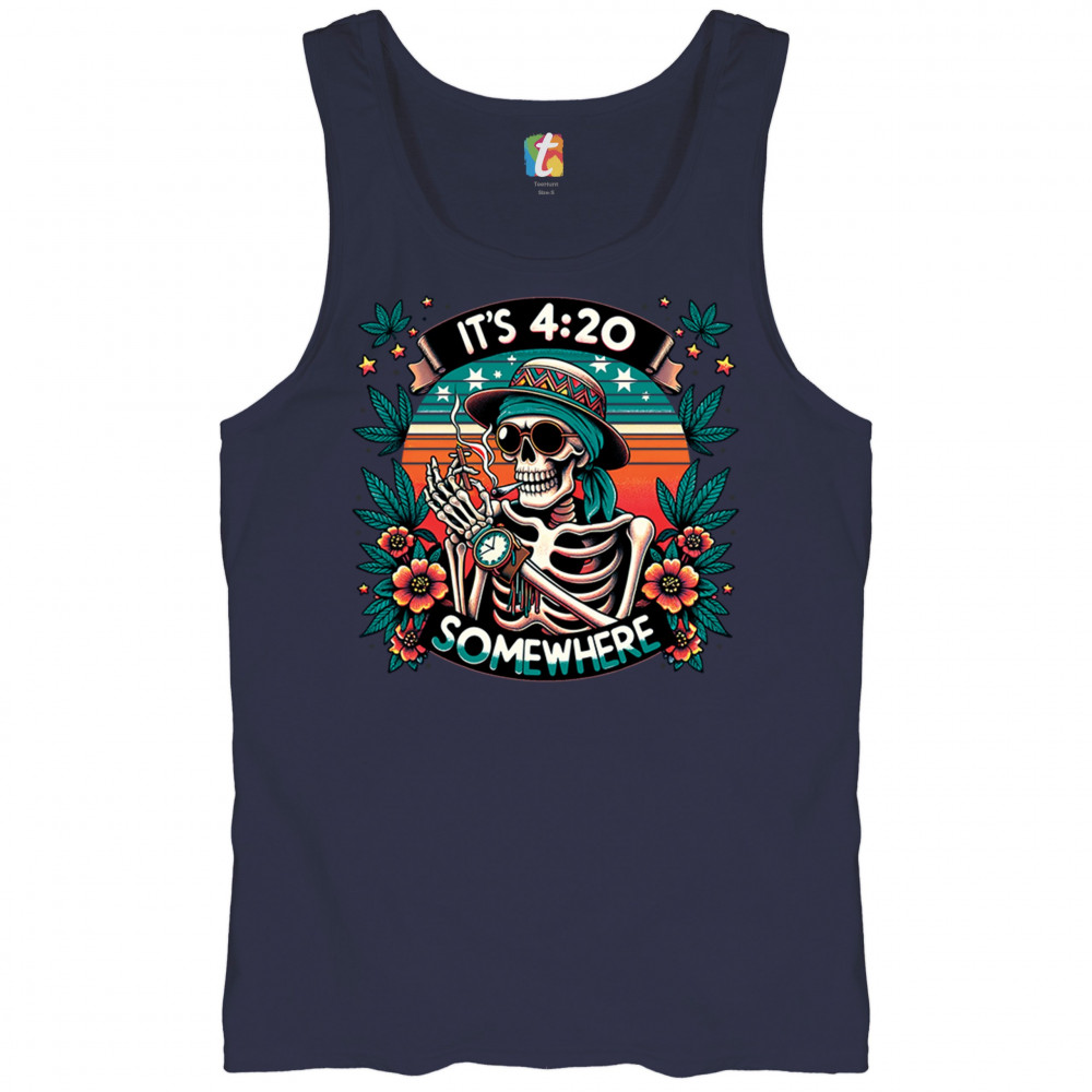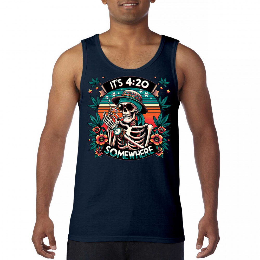 Get lifted with this “It’s 4:20 Somewhere†design featuring a joint-smoking skeleton, tropical sunset, and Deadhead stoner vibes. With bold trippy colors and beachy weed art, this tee is perfect for April 20 parties, summer festivals, and cannabis lovers living the high life.