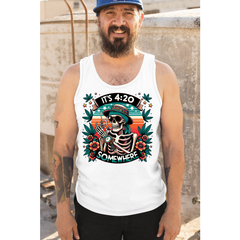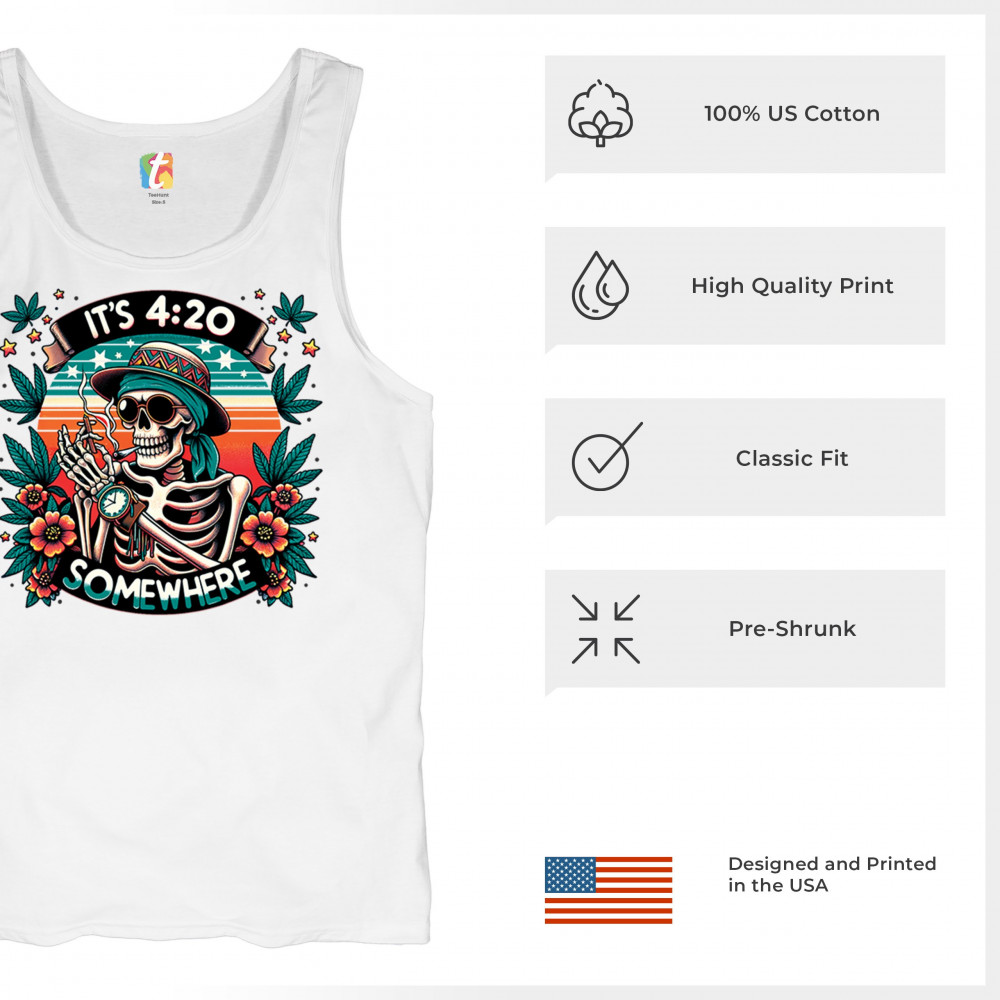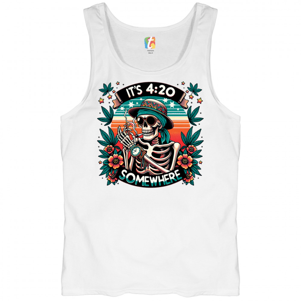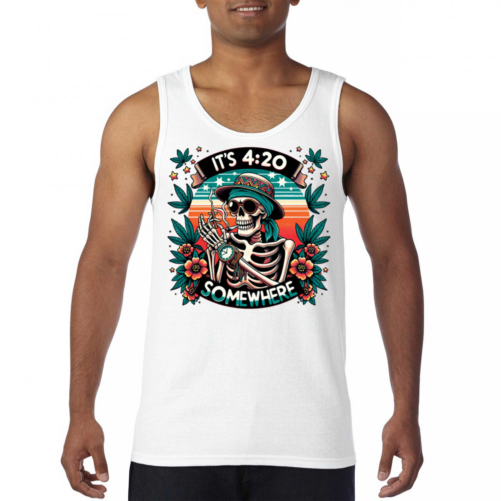 Get lifted with this “It’s 4:20 Somewhere†design featuring a joint-smoking skeleton, tropical sunset, and Deadhead stoner vibes. With bold trippy colors and beachy weed art, this tee is perfect for April 20 parties, summer festivals, and cannabis lovers living the high life.