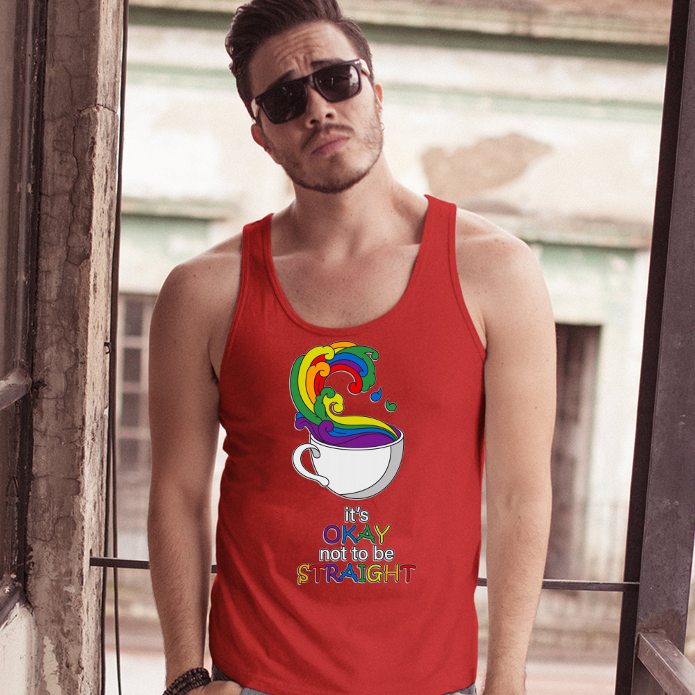 IT'S OKAY NOT TO BE STRAIGHT tank top gay acceptance lgbtq pride men's top red