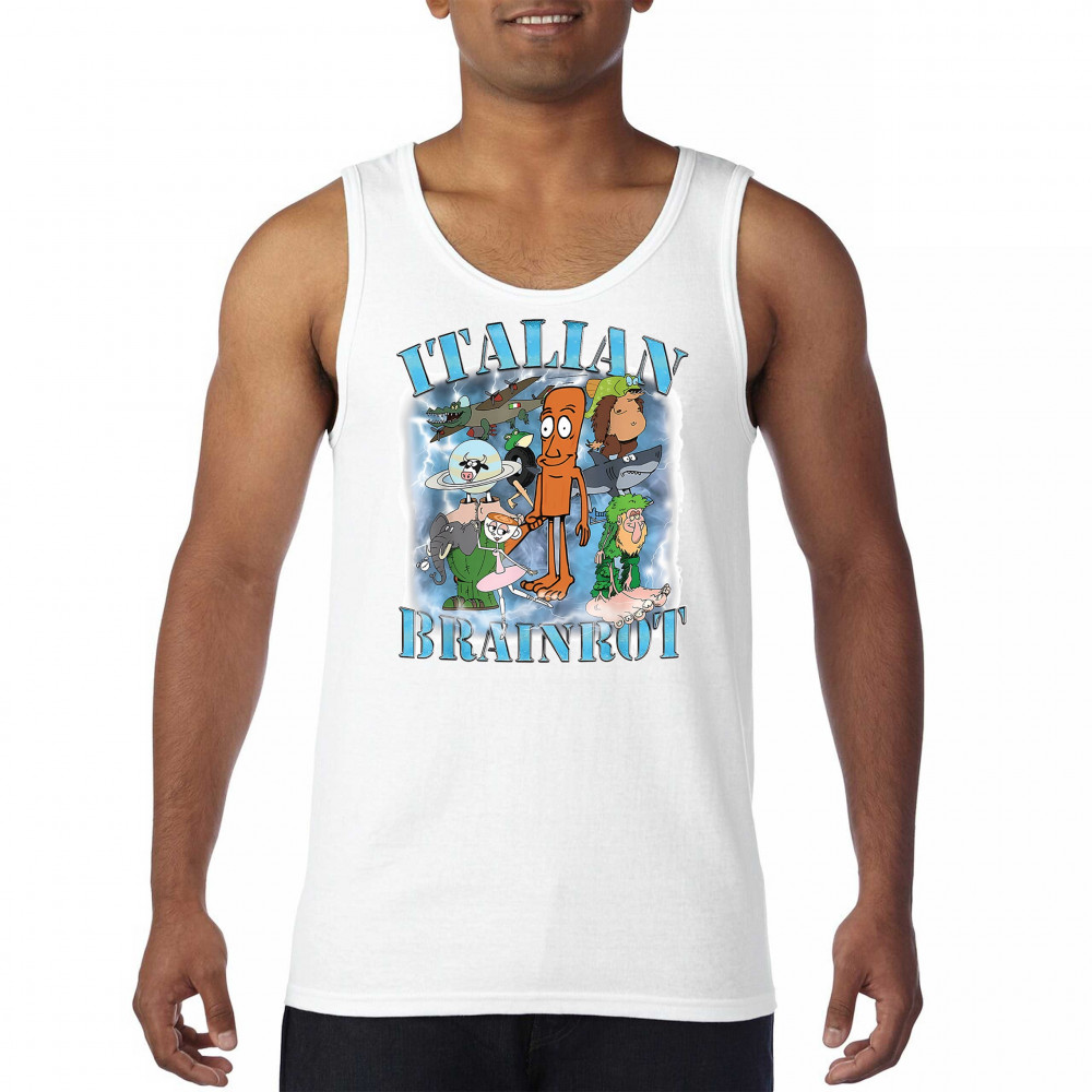 Unleash pure meme chaos with our Italian Brainrot shirt featuring iconic Gen Z fever dream characters like Chimpanzini Bananini, Tralalero Tralala, and Bombardino crocodile. This absurd design captures viral humor, ironic fashion, and chaotic energy, perfect for cursed meme fans, TikTok lovers, Gen Alpha vibes, and surreal internet style.