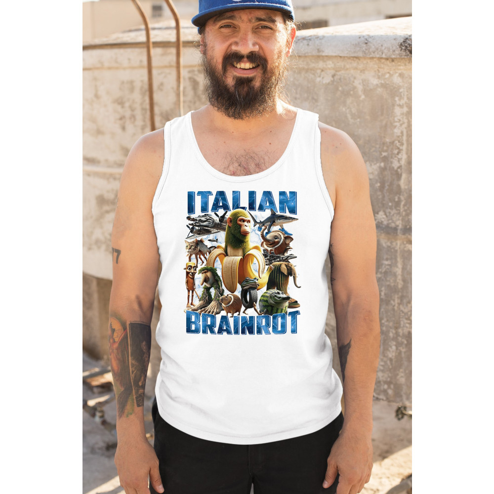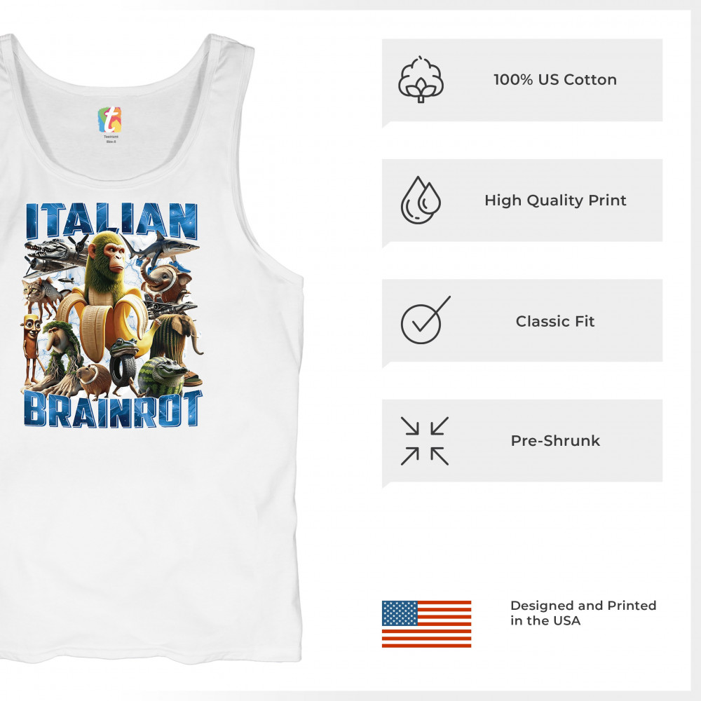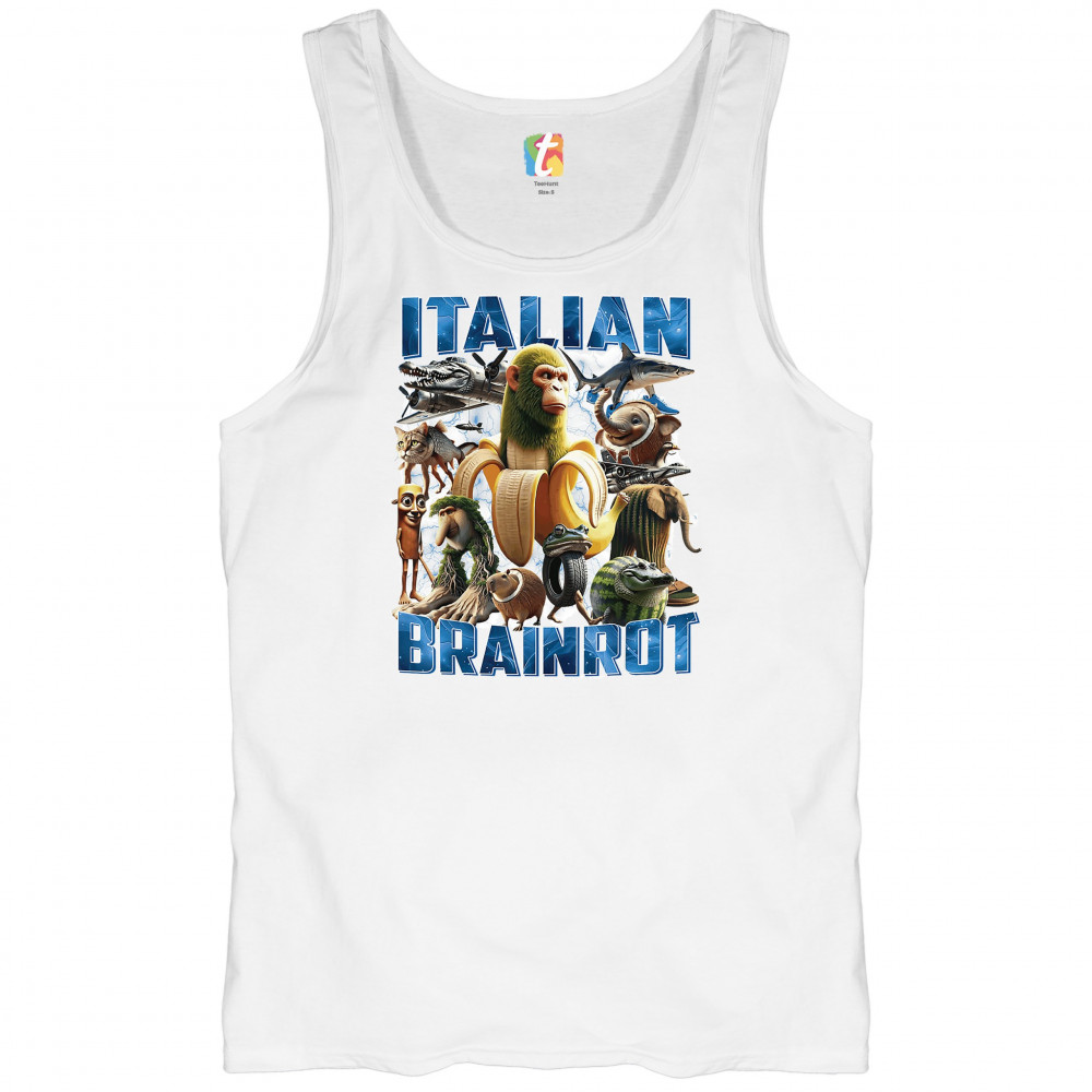 This design captures the full force of Italian brainrot—bananas, sharks, monkeys, and meme beasts collide in an unfiltered internet-core explosion. Perfect for fans of cursed humor, Gen Z trends, absurd fashion, TikTok memes, ironic style, surreal pop art, chaotic culture, digital nonsense, Gen Alpha brainrot, and hyper-online energy.