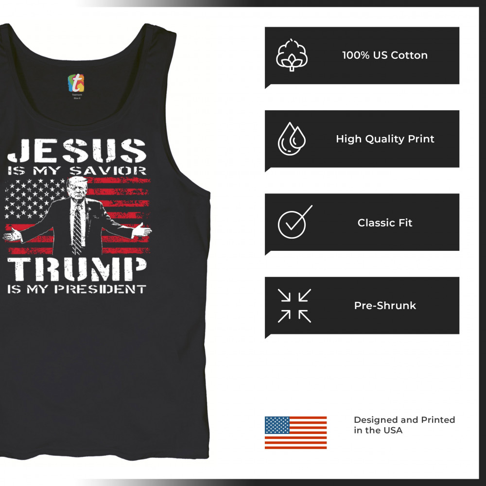 Express your unwavering faith and patriotism with the "Jesus is My Savior, Trump is My President" design. Perfect for conservatives, Republicans, and Trump supporters, this bold graphic combines spiritual devotion with a commitment to America First values. Celebrate the 47th President and the fight for freedom with this standout piece at rallies, events, or as a unique gift.