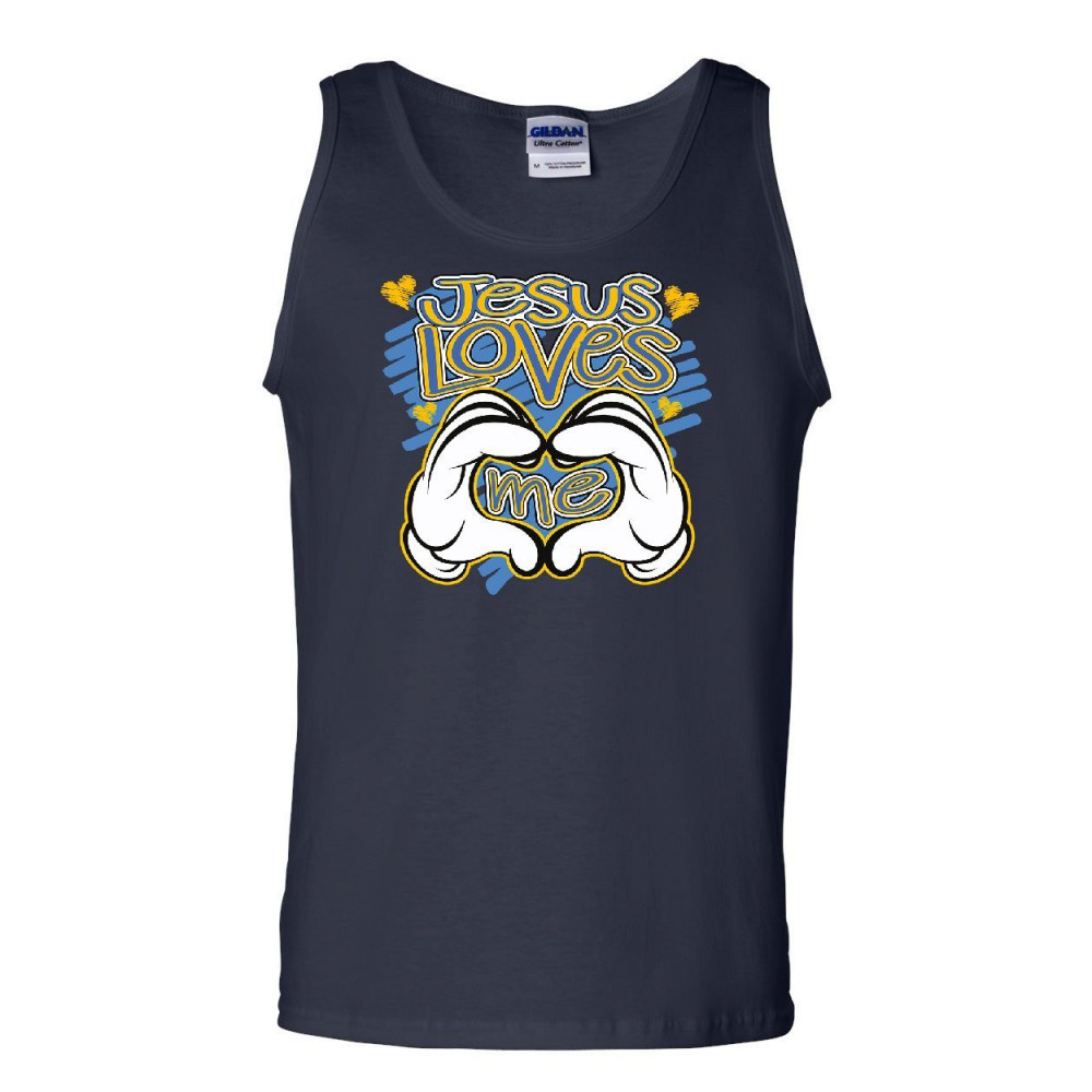 JESUS LOVES ME tank top religion bible savior christianity church sleeveless navy blue