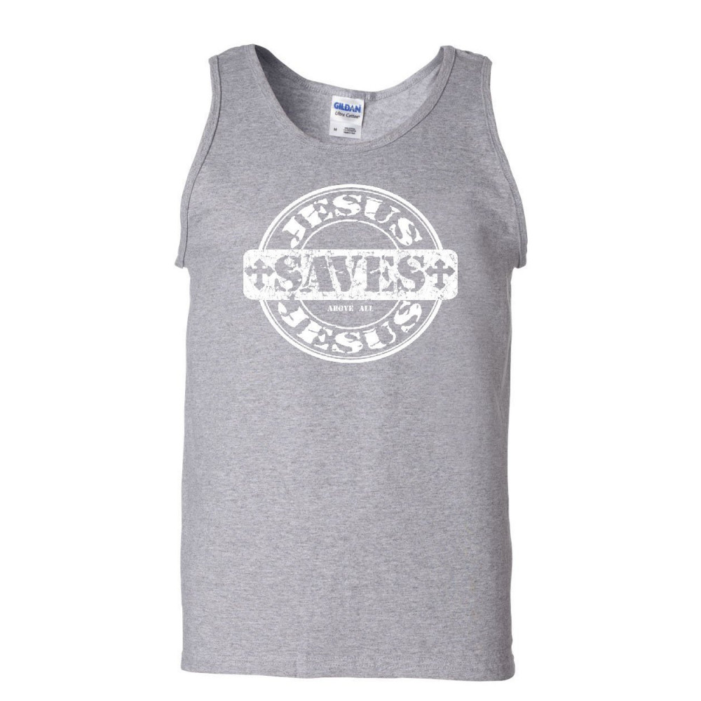 JESUS SAVES JESUS ABOVE ALL jesus saves tank top jesus christ above all christianity bible sleeveless gray
