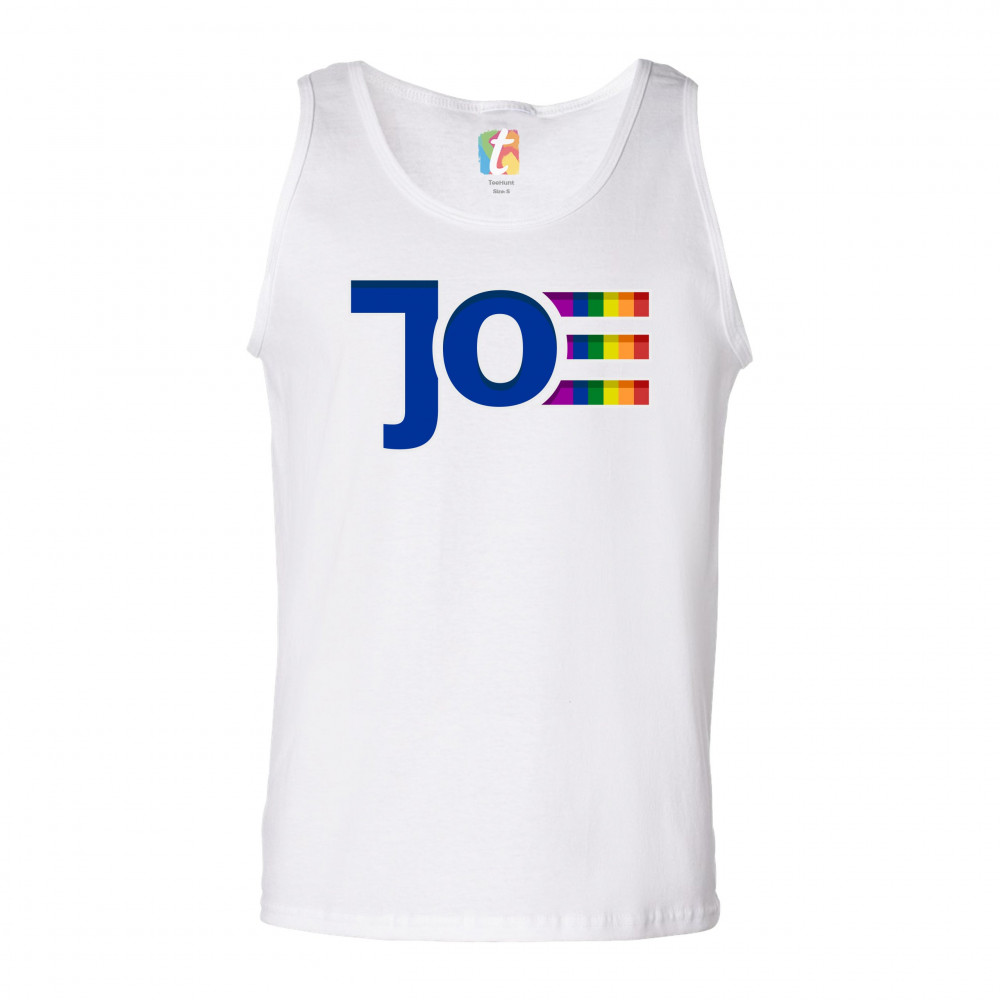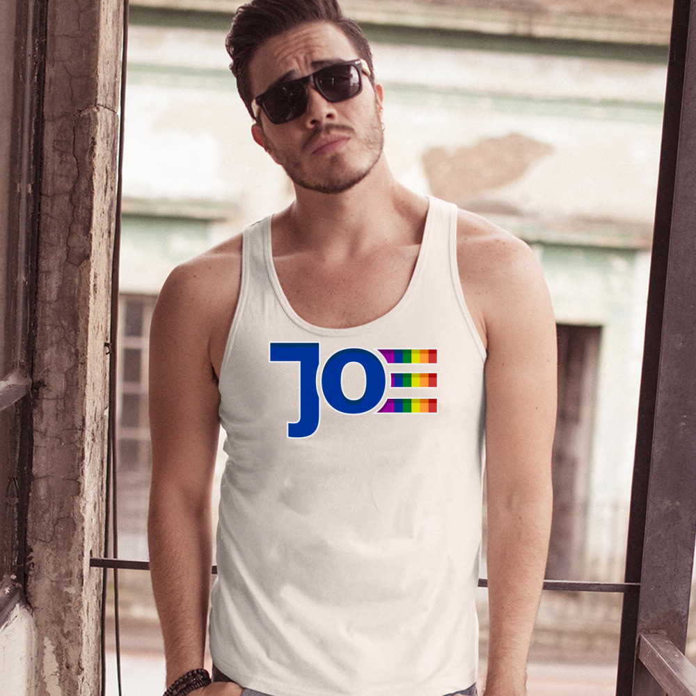 A political print featuring the name of the democratic presidential candidate "Joe". The letter "e" is painted with the colors of the lgbt rainbow. It is a great choice to wear to show your support for the democratic presidential nominee and his vice pres
