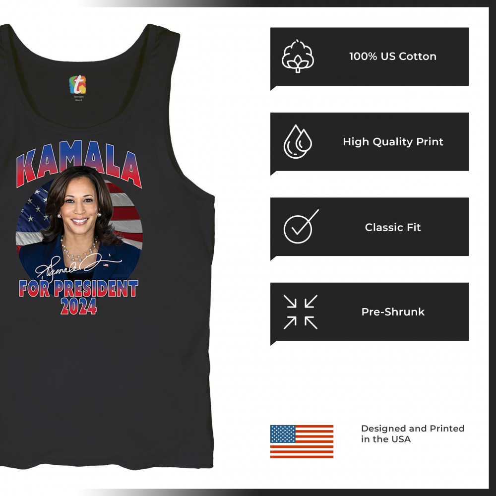 Kamala Harris's 2024 presidential campaign design captures the essence of hope and progress. Featuring a bold and vibrant graphic with her name, portrait, and the American flag, this design symbolizes the fight for liberal values, women's rights, and LGBTQ+ equality. It's perfect for supporters who want to make a statement at rallies, events, or in everyday life. Show your support for a brighter future with this compelling design.