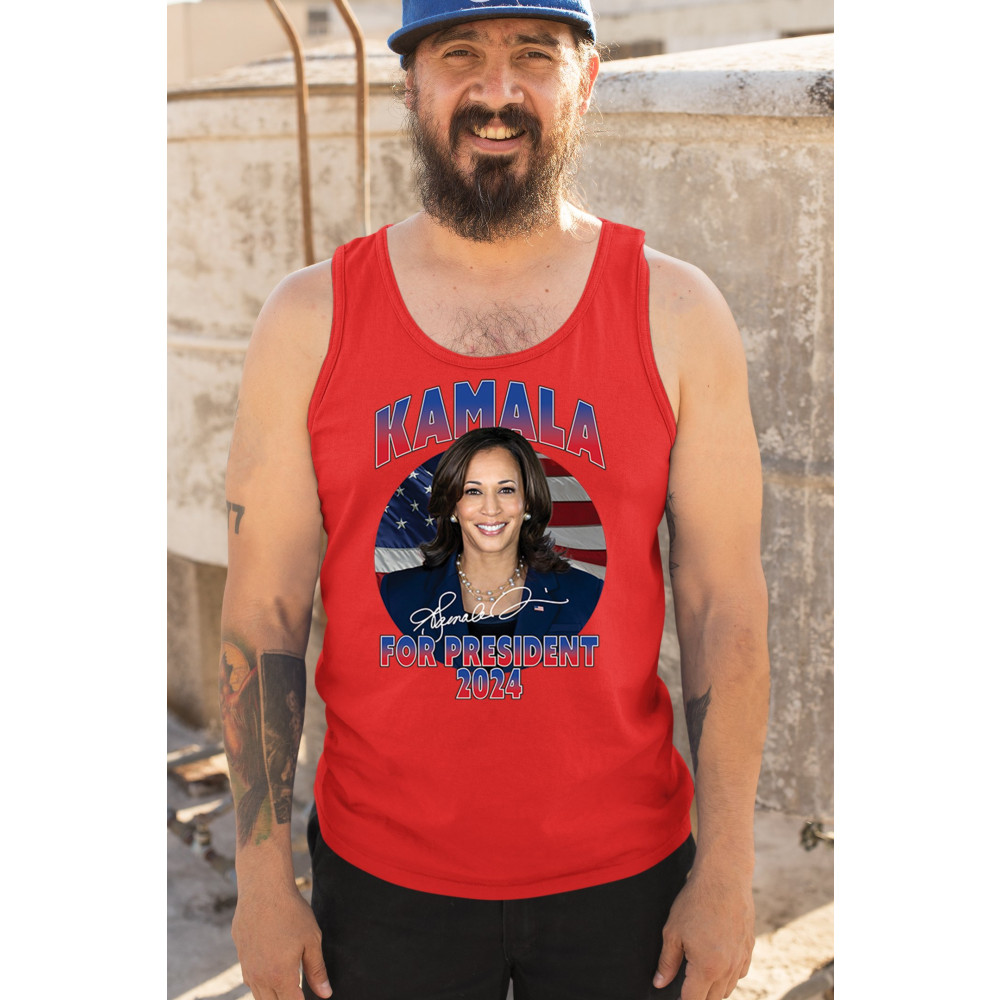 Kamala Harris's 2024 presidential campaign design captures the essence of hope and progress. Featuring a bold and vibrant graphic with her name, portrait, and the American flag, this design symbolizes the fight for liberal values, women's rights, and LGBTQ+ equality. It's perfect for supporters who want to make a statement at rallies, events, or in everyday life. Show your support for a brighter future with this compelling design.