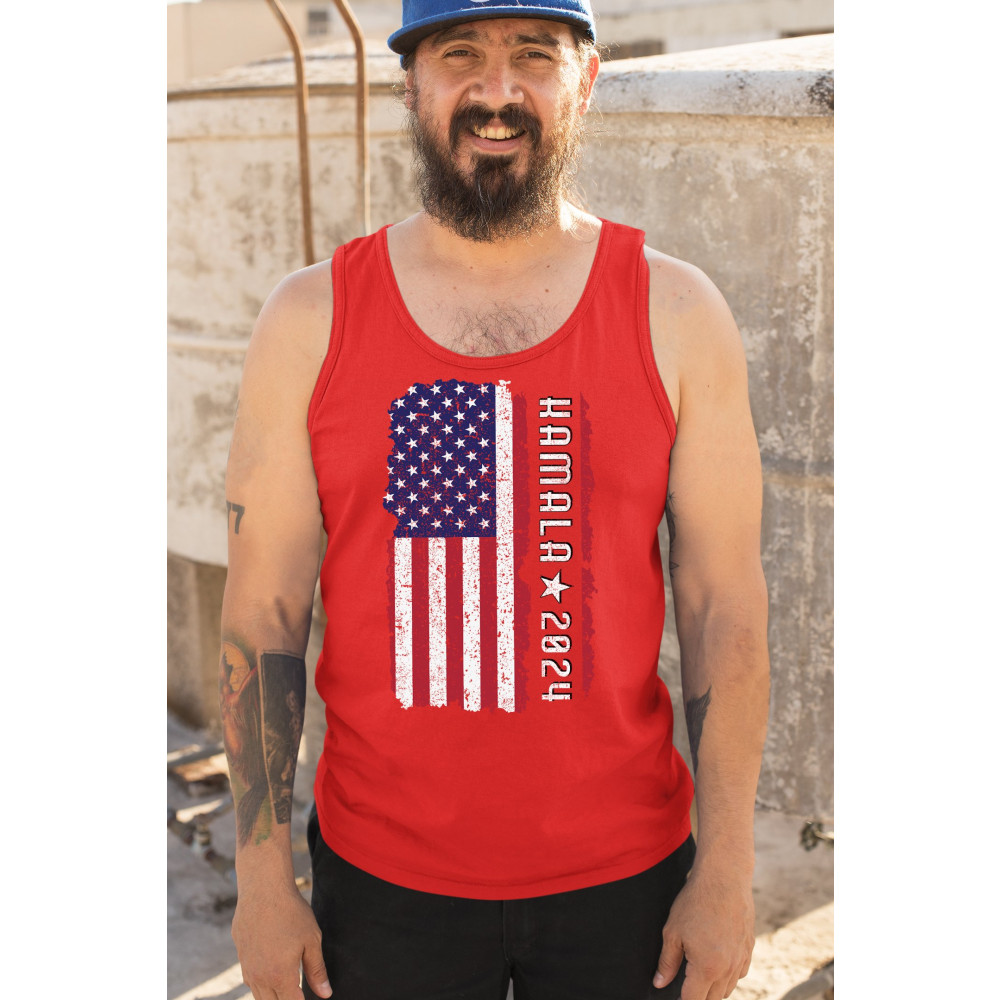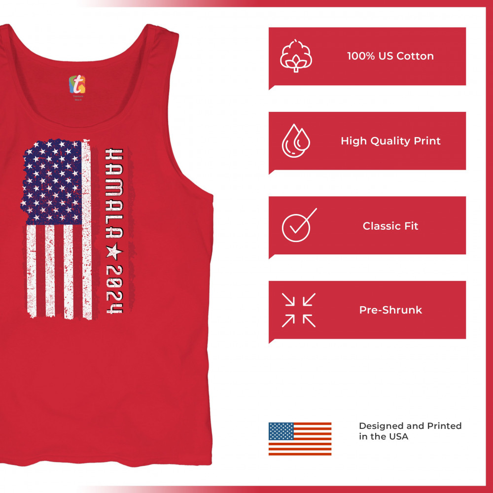 Support Kamala Harris 2024 with a bold design featuring a distressed American flag. Perfect for rallies and political events. Celebrate diversity!