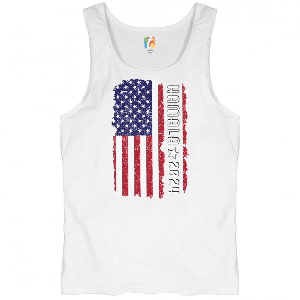 Support Kamala Harris 2024 with a bold design featuring a distressed American flag. Perfect for rallies and political events. Celebrate diversity!