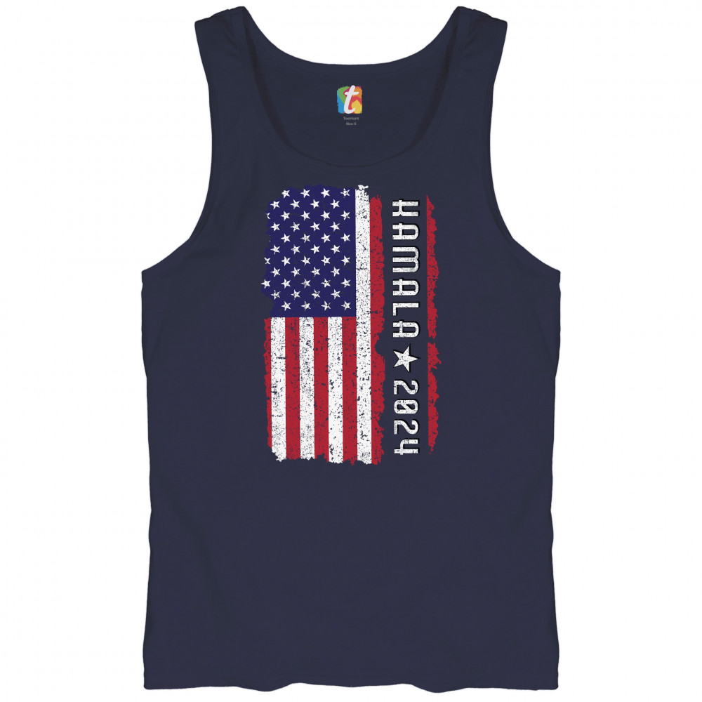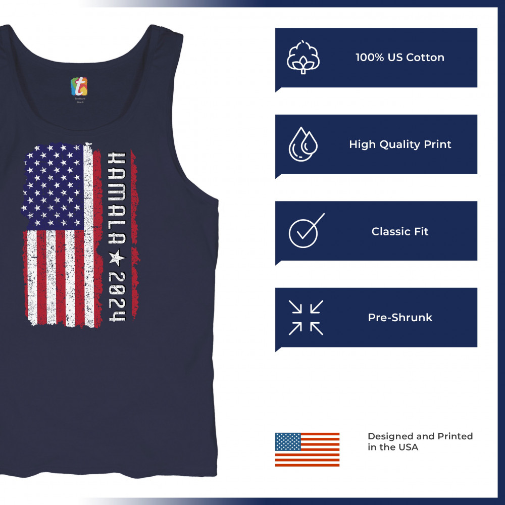 Support Kamala Harris 2024 with a bold design featuring a distressed American flag. Perfect for rallies and political events. Celebrate diversity!