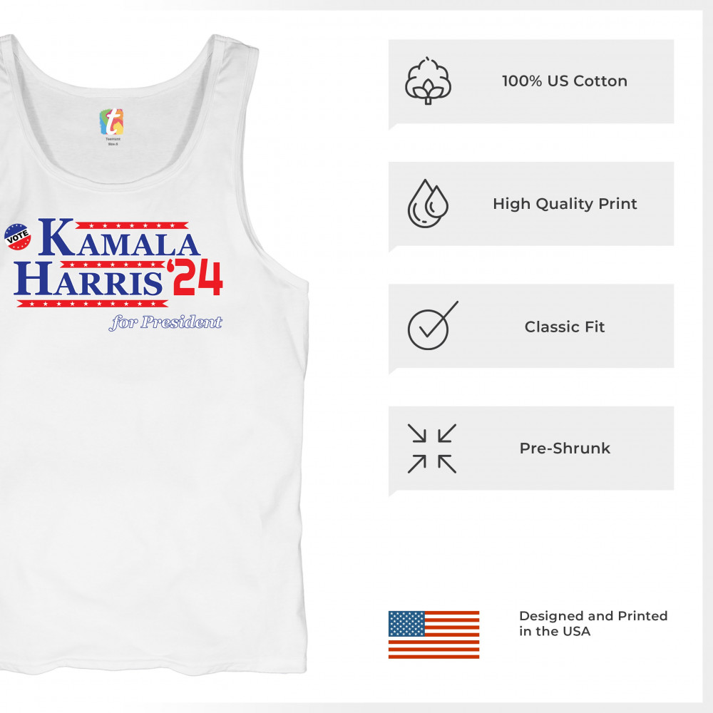 Support Kamala Harris for President in 2024 with this bold, patriotic design. Perfect for liberals, Democrats, and minority communities.