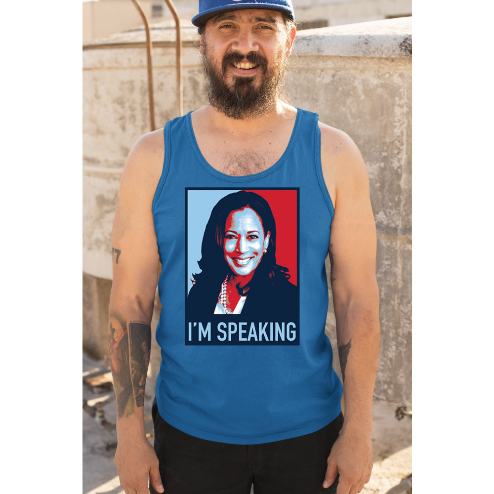 Show your support for Kamala Harris and Tim Walz with this "I'm Speaking" design. A bold statement celebrating liberal values and progressive policies. "Let's Win This"
